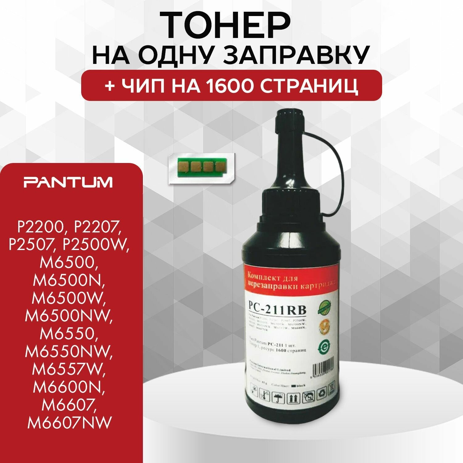 Комплект для заправки картриджа (тонер на 1600 стр.+чип) Pantum PC-211RB
