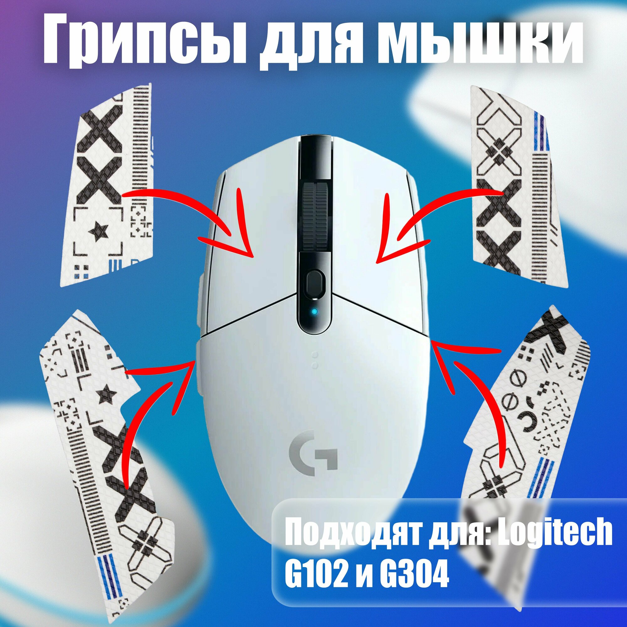 Купить Грипсы для мышки универсальные Logitech G102 LIGHTSYNC, G304 LIGHTSPEED, Противоскользящие накладки для мыши, Белый