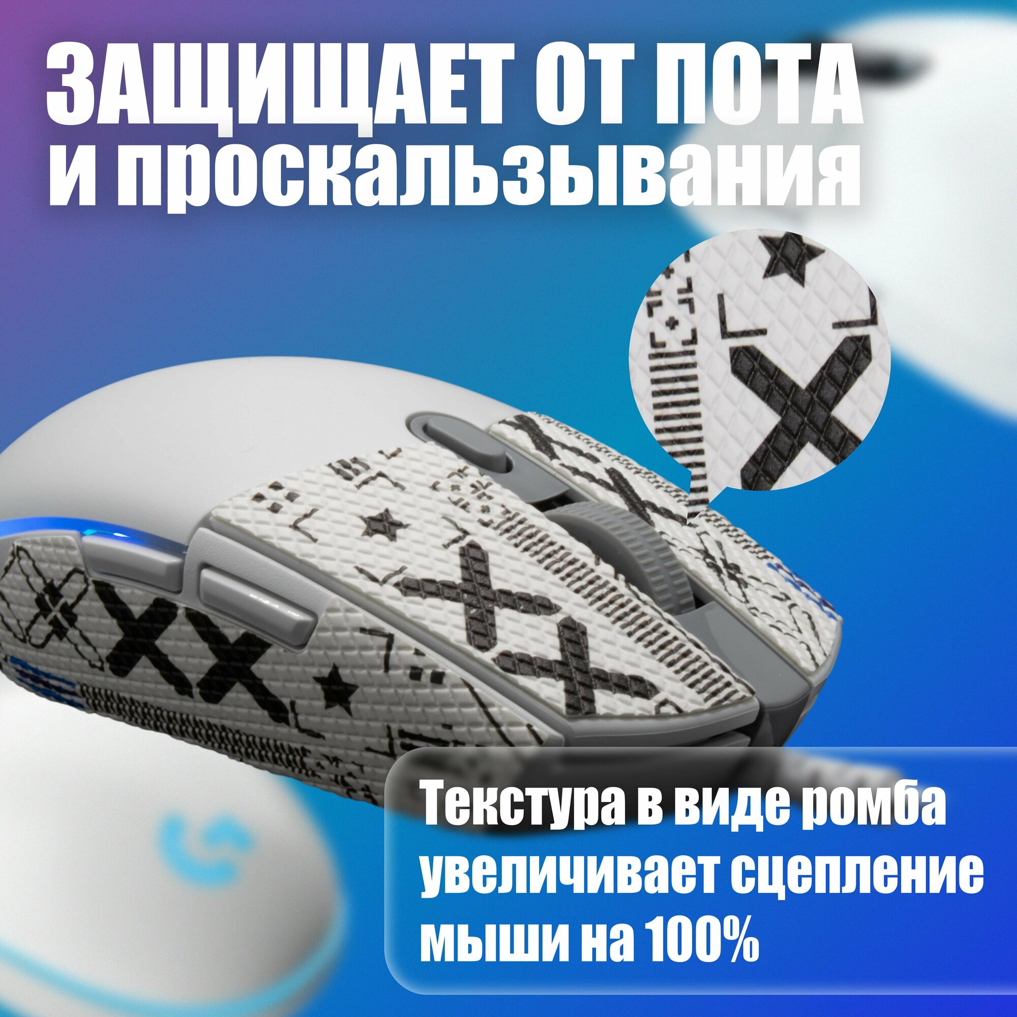 Грипсы для мышки универсальные Logitech G Pro X Superlight и G Pro Wireless, Противоскользящие накладки для мыши, Белый