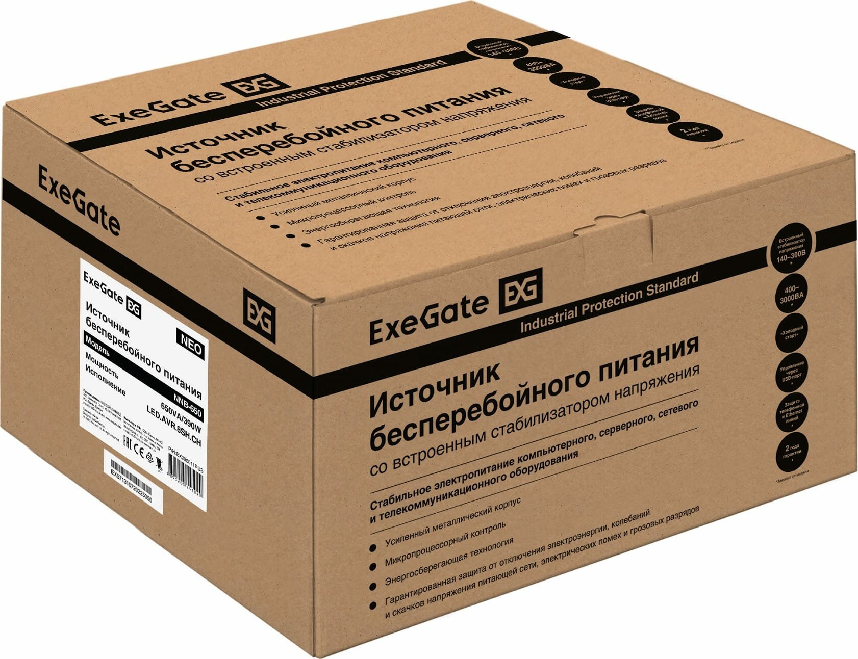ИБП ExeGate NEO NNB-650.LED.AVR.8SH.CH <650VA/390W, LED, AVR, 8*Schuko, 4*USB-порта для зарядки, Black>