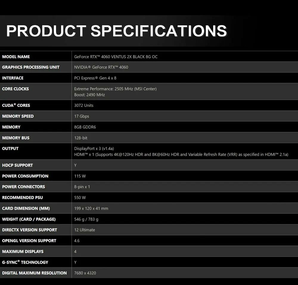 Видеокарта MSI NVIDIA GeForce RTX 4060 VENTUS 2X BLACK OC 8Gb DDR6 128 бит (RTX 4060 VENTUS 2X BLACK 8G OC) интересное:
