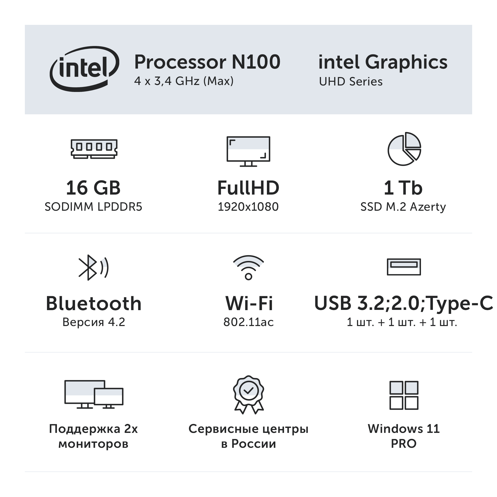Ноутбук Azerty RB-1552 (15,6 IPS 1920x1080 Intel N100 4x0.8 ГГц, 16 Гб LPDDR5, 128 Гб SSD)