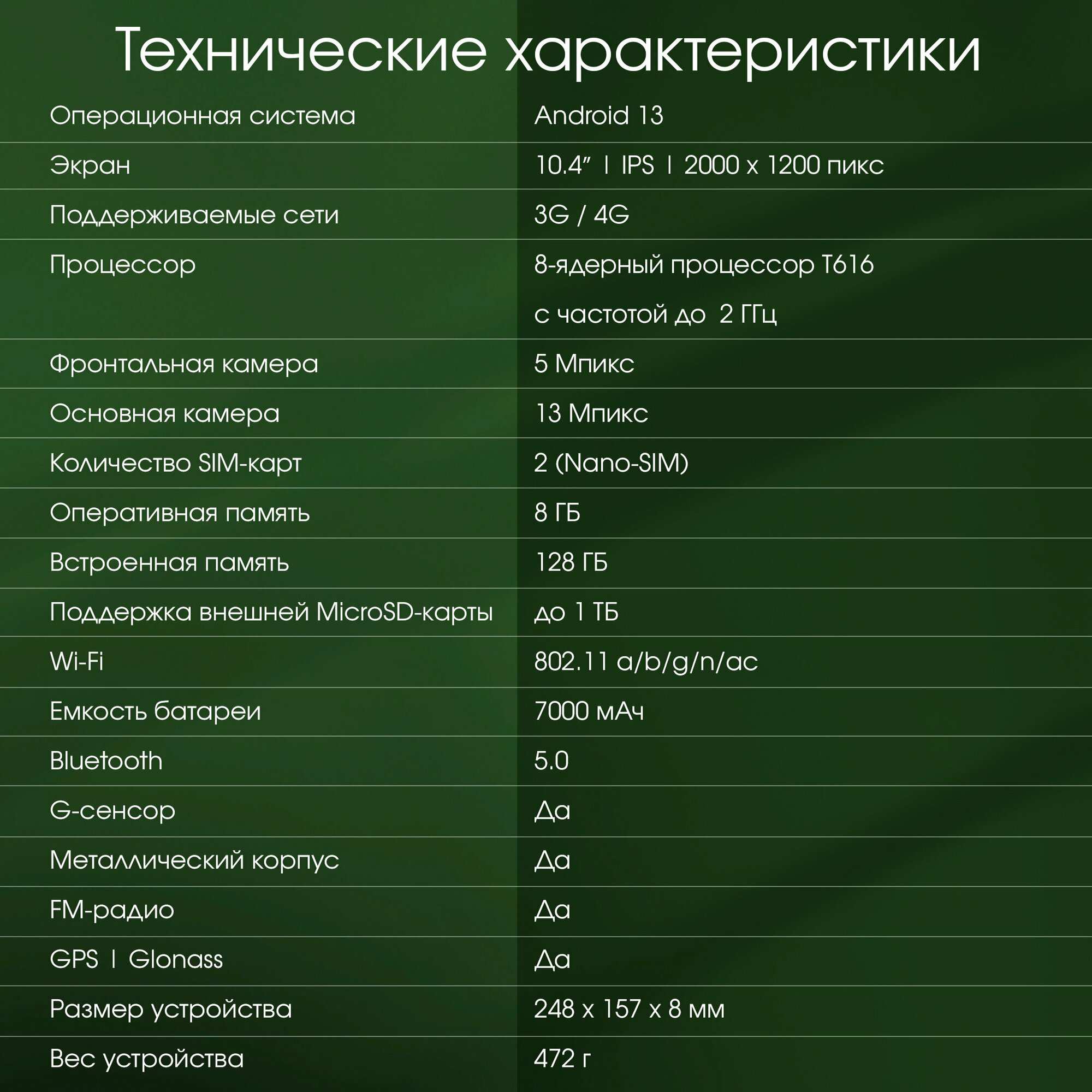 Планшет DIGMA PRO HIT 16 10.4", 8ГБ, 128GB, 3G, 4G, Android 13 серый (hs1003pl) интересное: