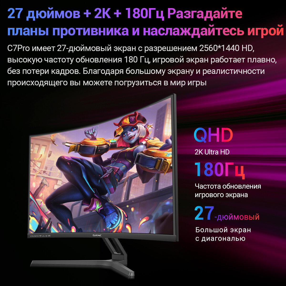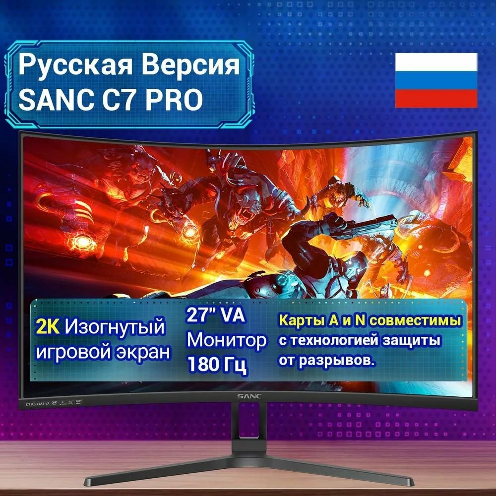 Купить Sanc C7 PRO 27" 2K+180 Гц Инновационный изгиб1500R Широкая цветовая гамма sRGB Изогнутый монитор Игровой монитор