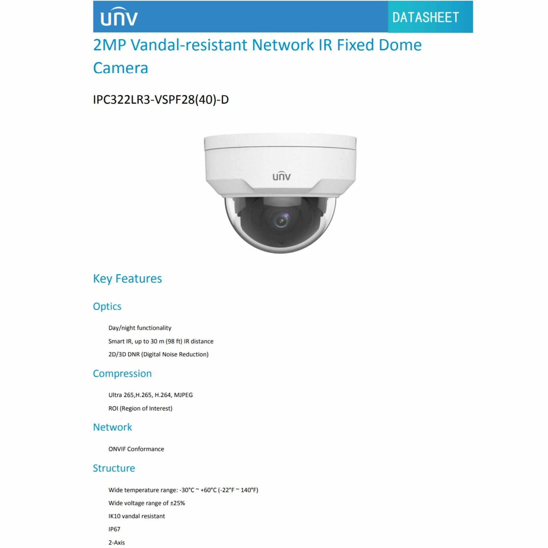 Uniview IPC322LR3-VSPF28-D-RU 2Мп 2,8 мм - камера видеонаблюдения IP внутренняя и уличная, цифровая купольная антивандальная IP-видеокамера для улицы и помещений c ИК-подсветкой, 1080P, CMOS 1/2.7" интересное: