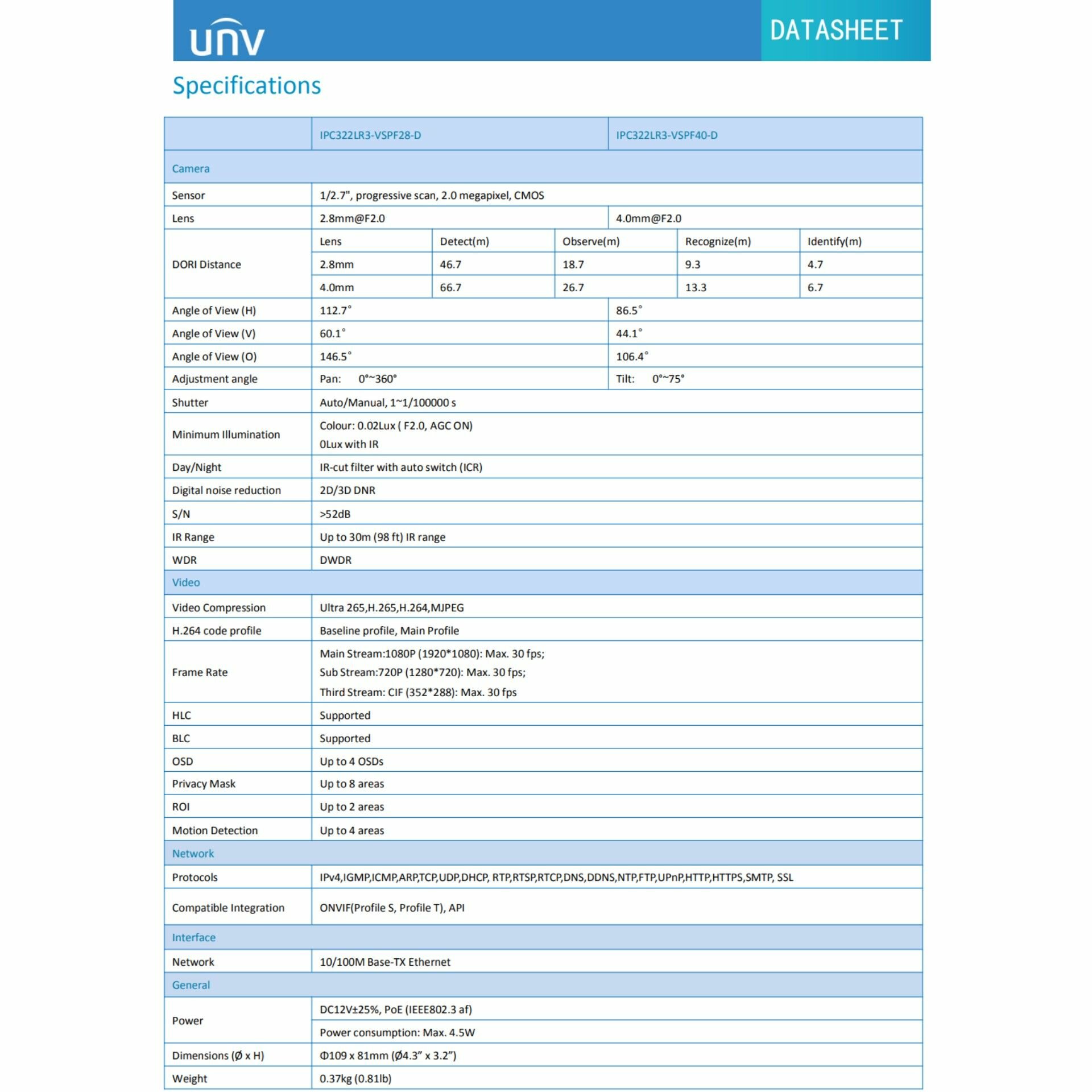 | Поддержка стандартов | DHCP / ONVIF |