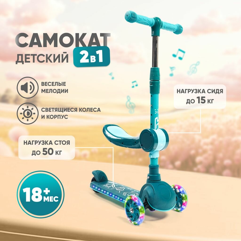 Купить Детский складной музыкальный самокат-кикборд Solmax беговел трансформер 2 в 1