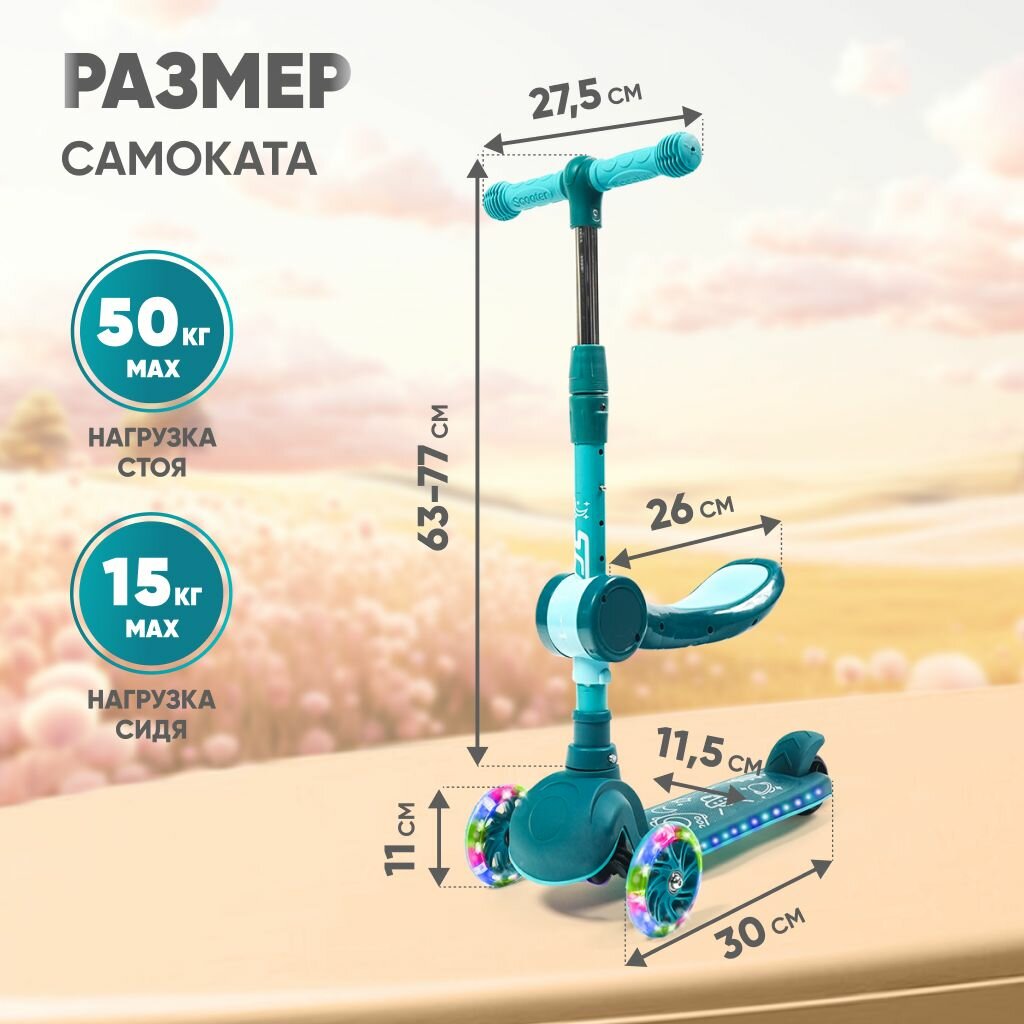 Самокат детский трехколесный COMIRON Yeenot "Зверята", регулируемая складная ручка, светящиеся колеса 110 и 75 мм, нагрузка до 40 кг, розовый / 1 шт.