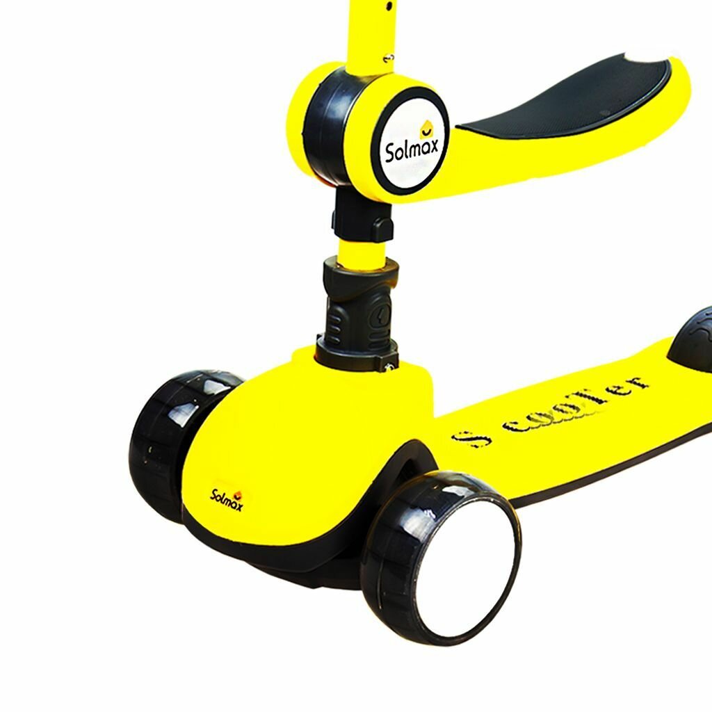 Самокат Solmax беговел трехколесный детский с подсветкой и музыкой, желтый