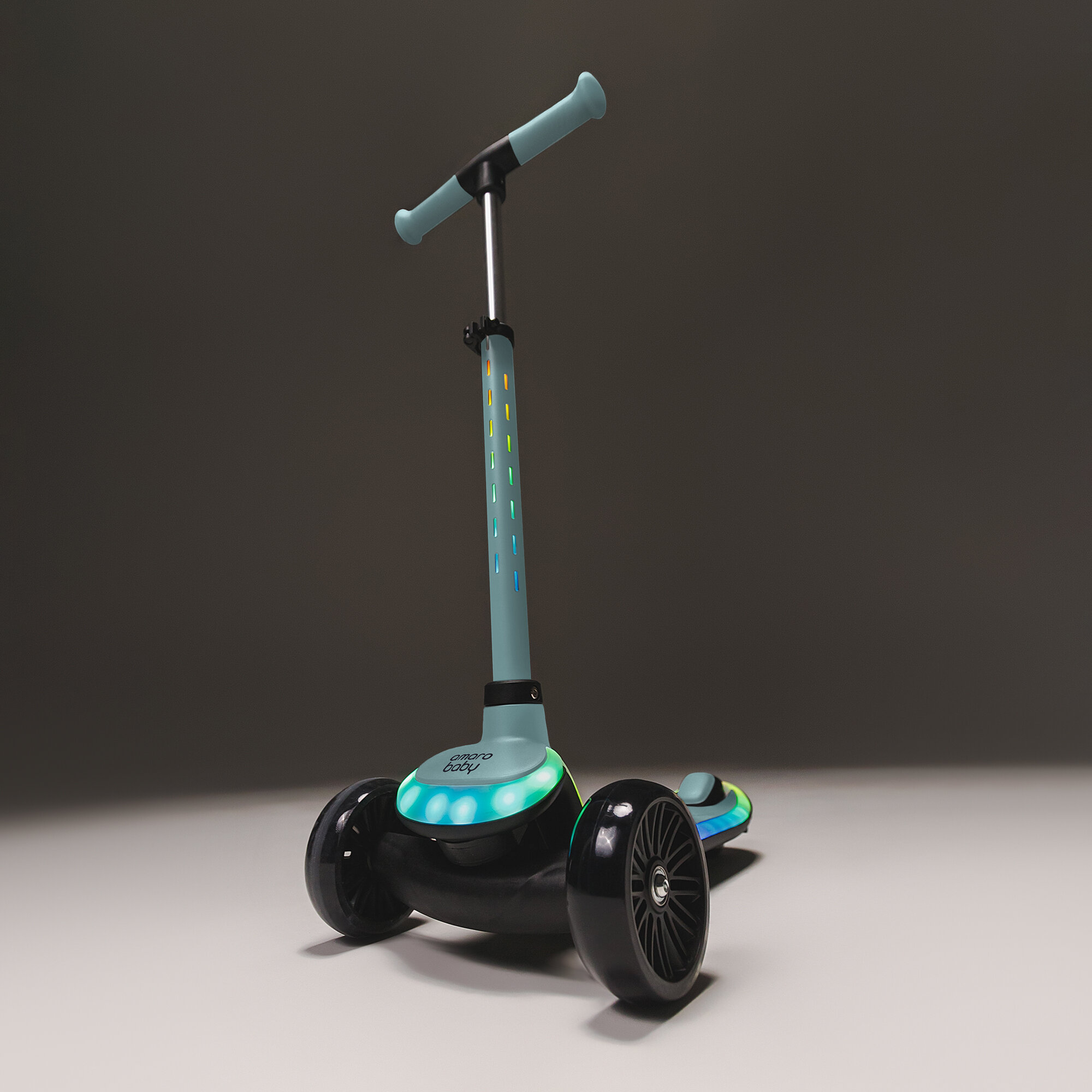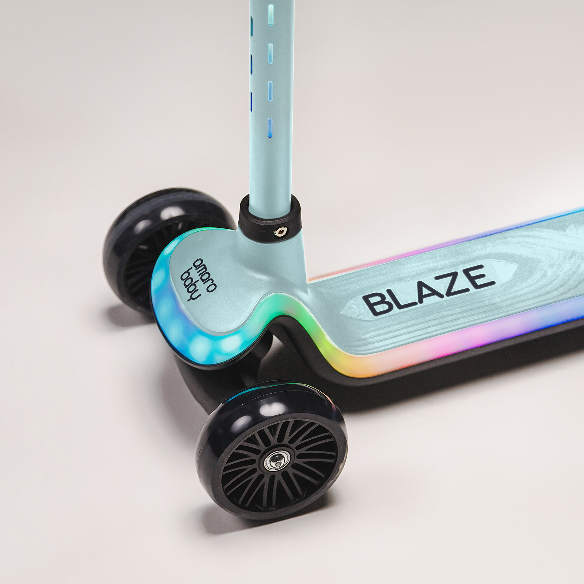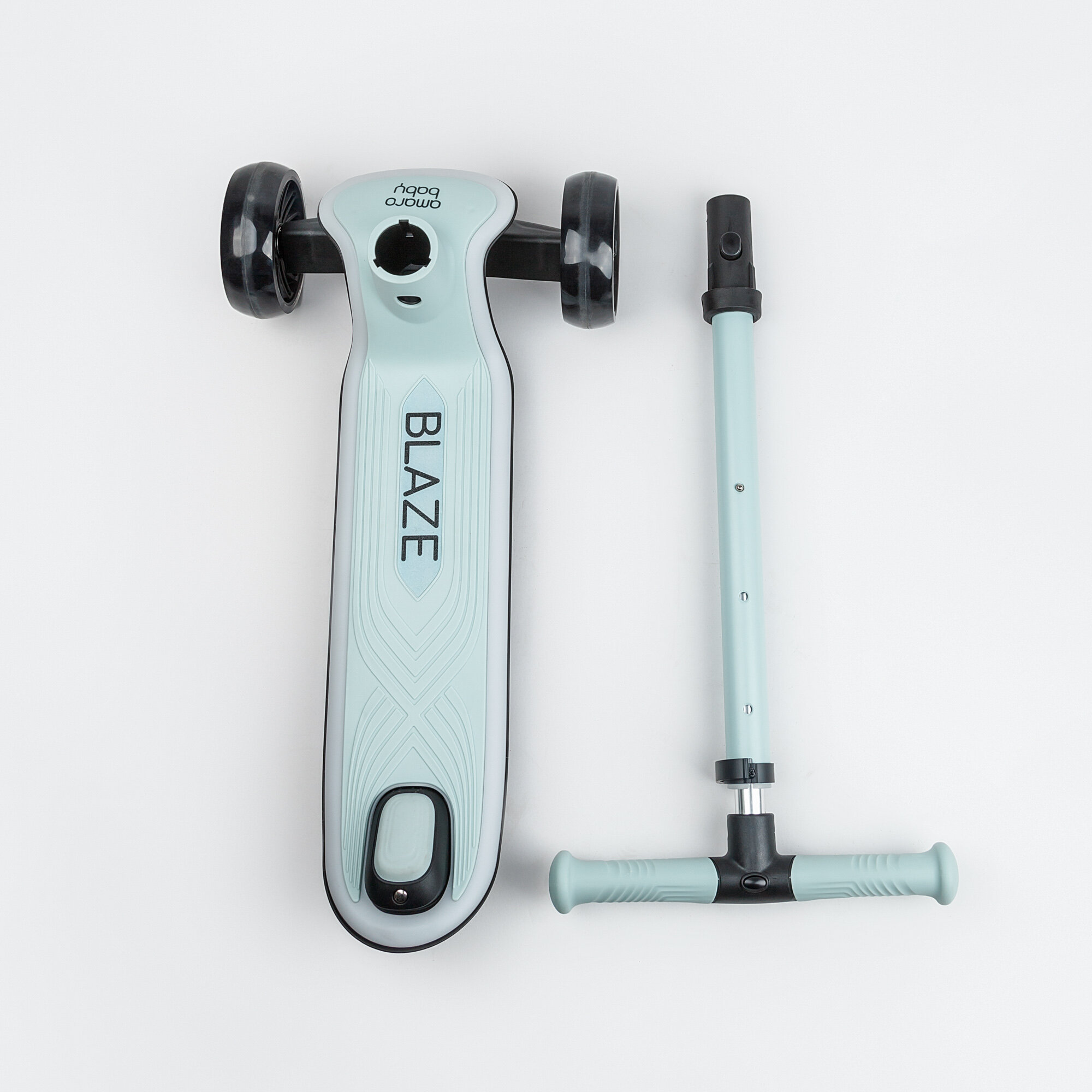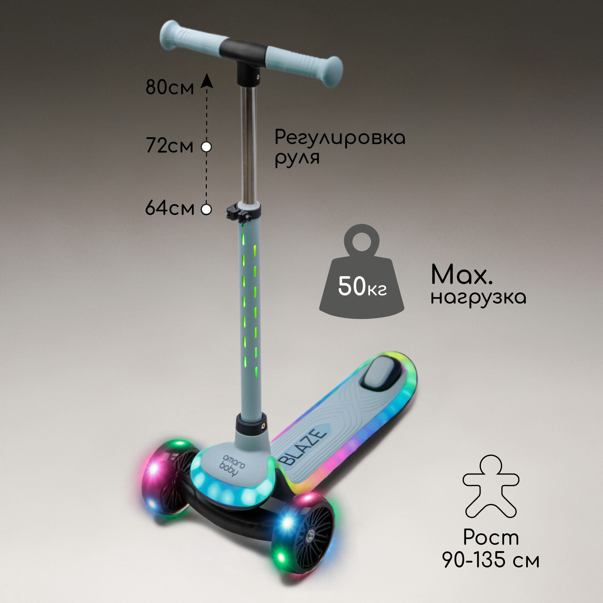 Самокат (кикборд) Amarobaby "Blaze", детский, трёхколёсный, с амортизатором, светящийся, до 50кг, мятный
