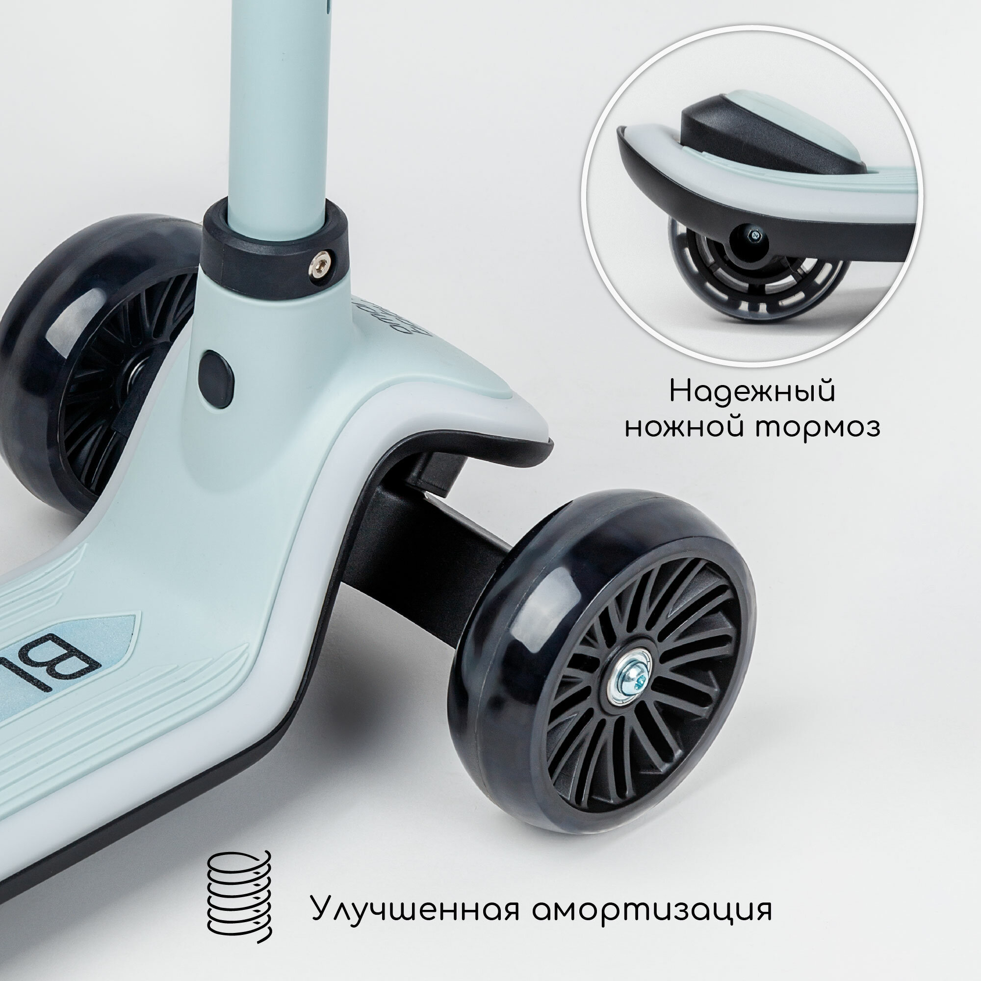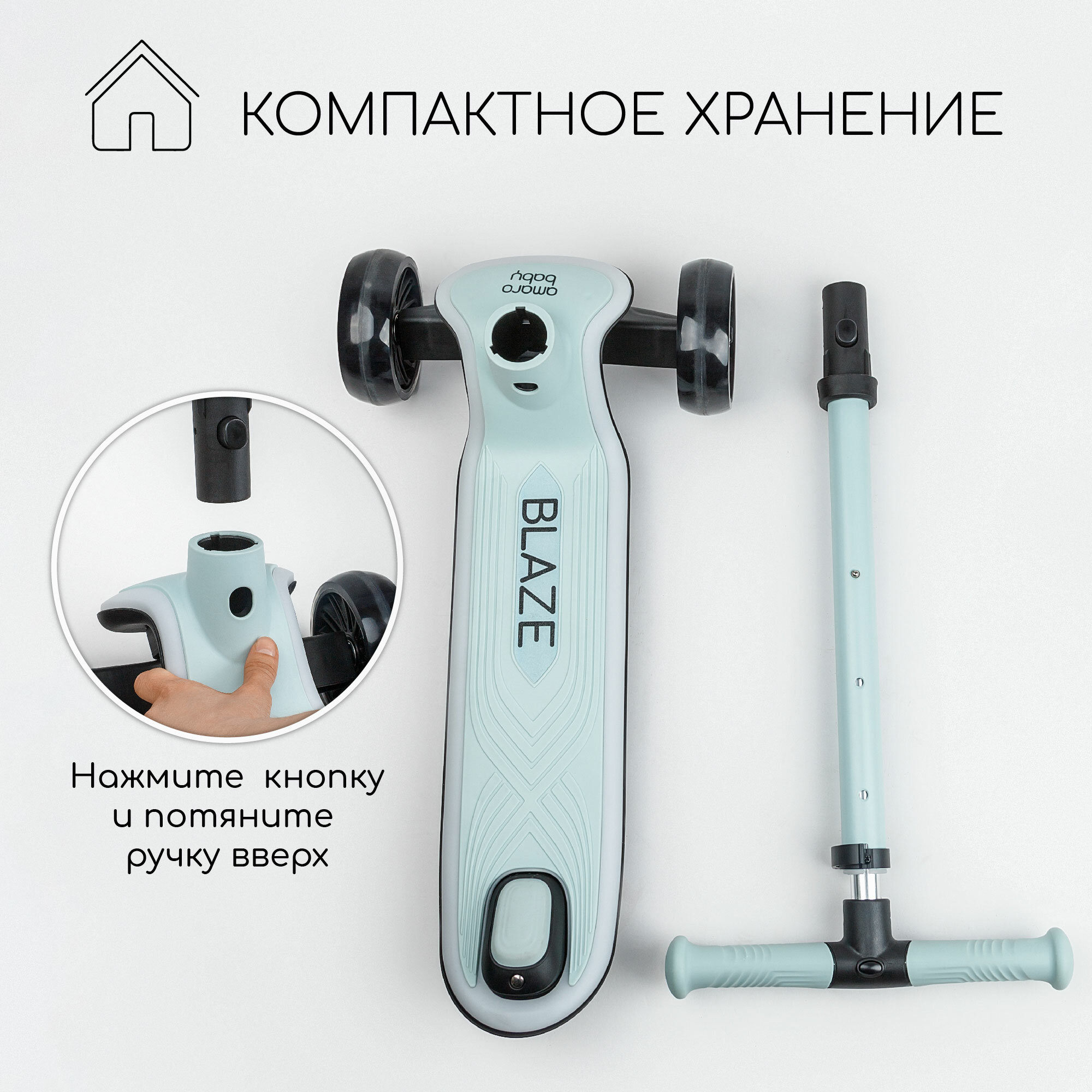 Самокат (кикборд) трехколёсный Amarobaby Blaze, мятный интересное: