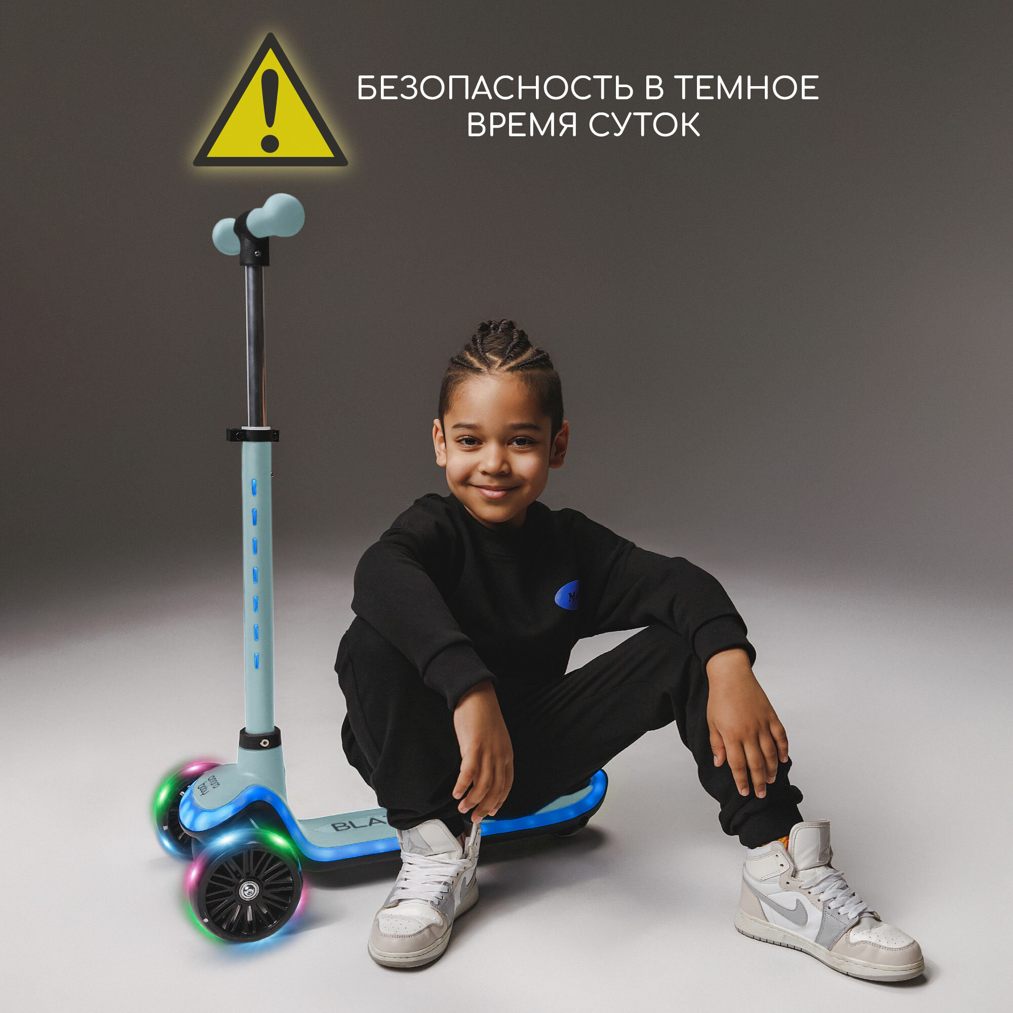 Самокат (кикборд) трехколёсный Amarobaby Blaze, чёрный