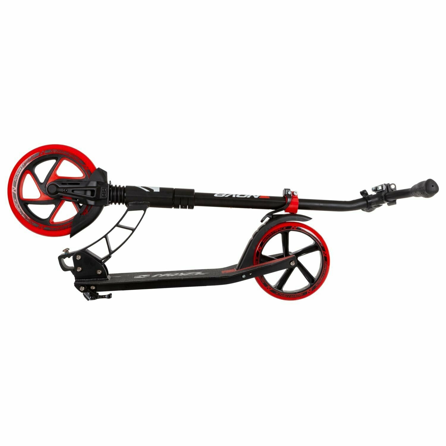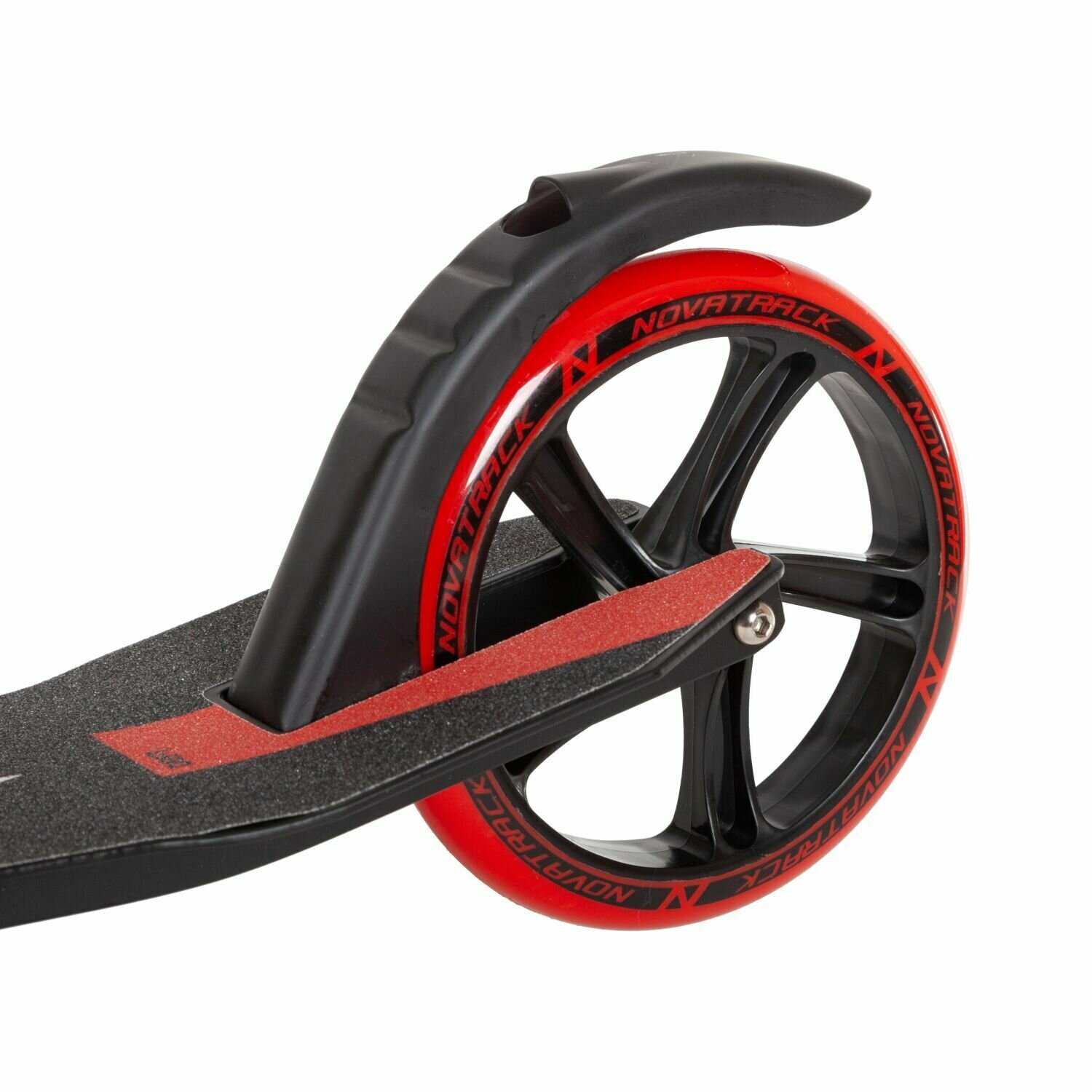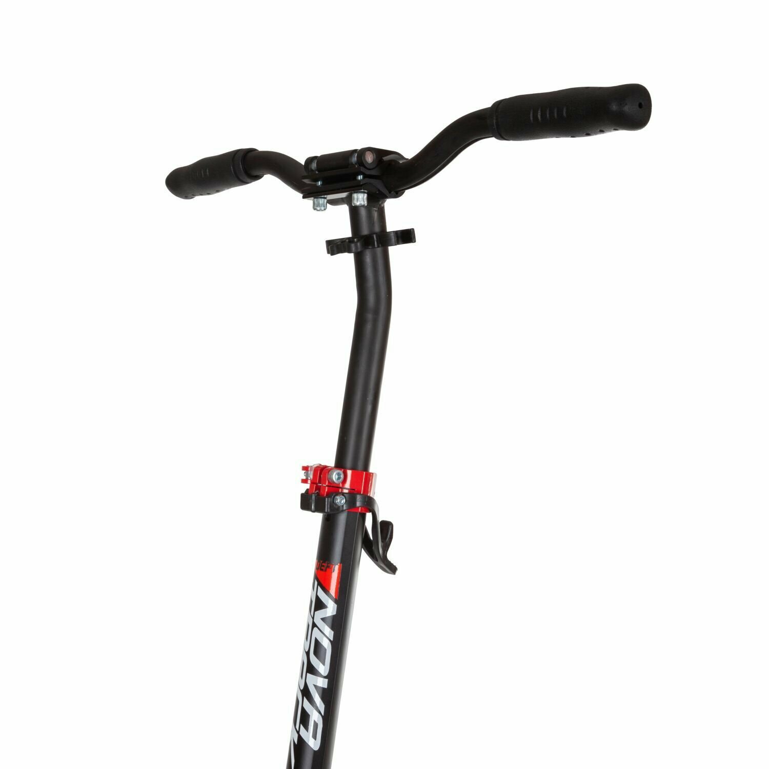 Самокат городской NOVATRACK DEFT алюм., амортизатор, колеса 230*200 мм PU, эргономичный Y-руль с фиксатором складных рукоятей, черный