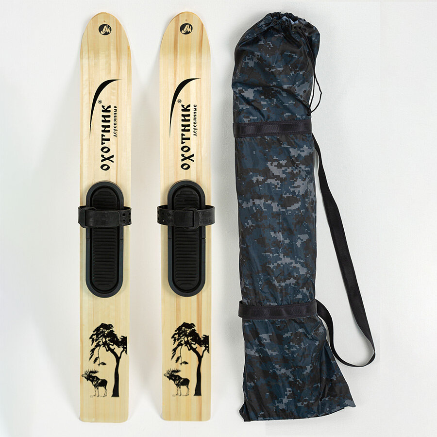 Лыжи охотничьи дерево-пластик Охотник 120 см с креплением брезент
