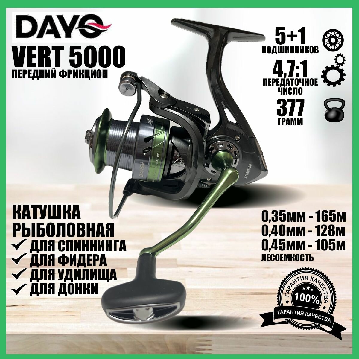 Катушка Dayo VERT 5000, с передним фрикционом, с дополнительной шпулей