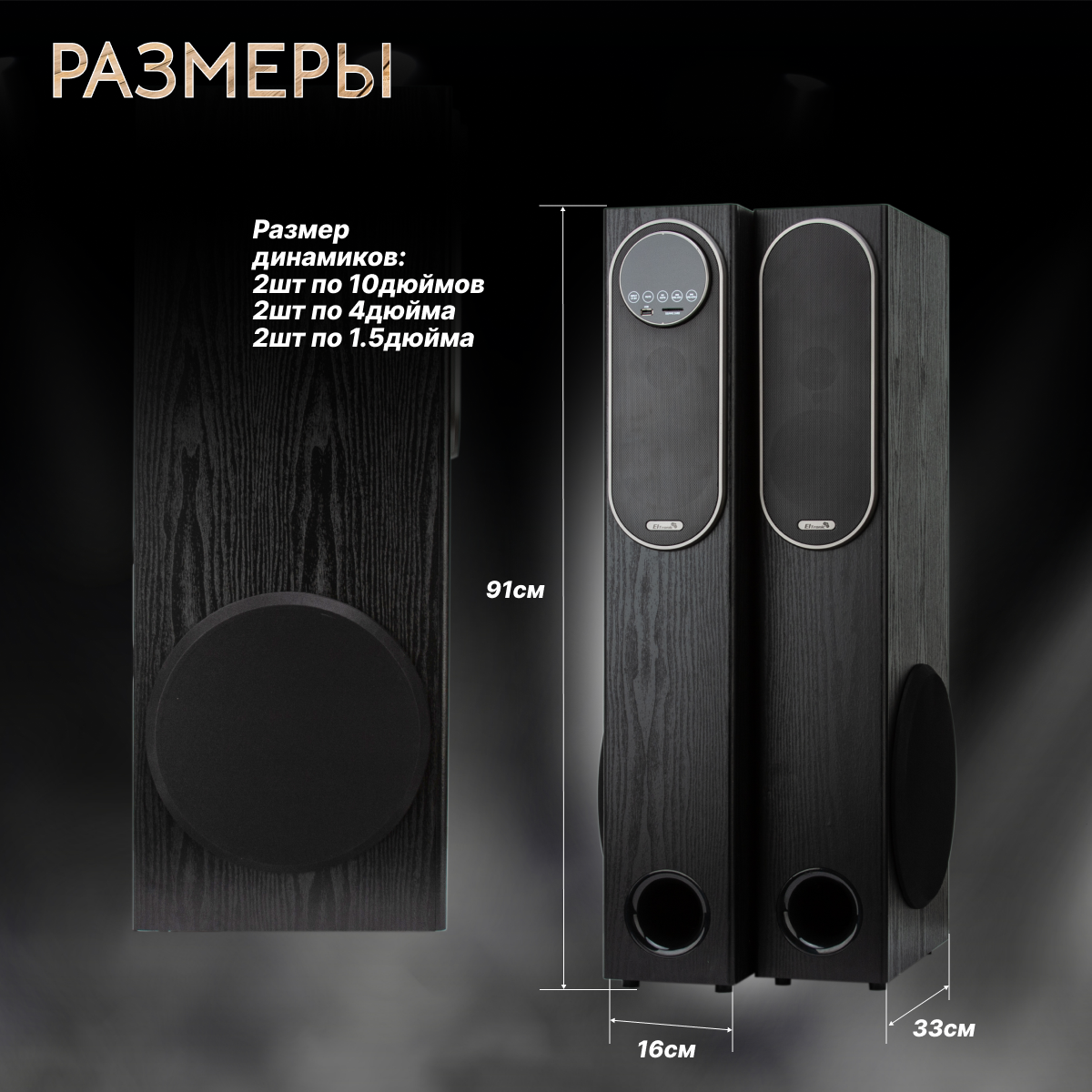 Колонки 2.0 Eltronic 20-81 HOME SOUND динамик 6шт/2х8"; 2х4"; 2х1.5" 100Вт, комплект 2 колонки, черн