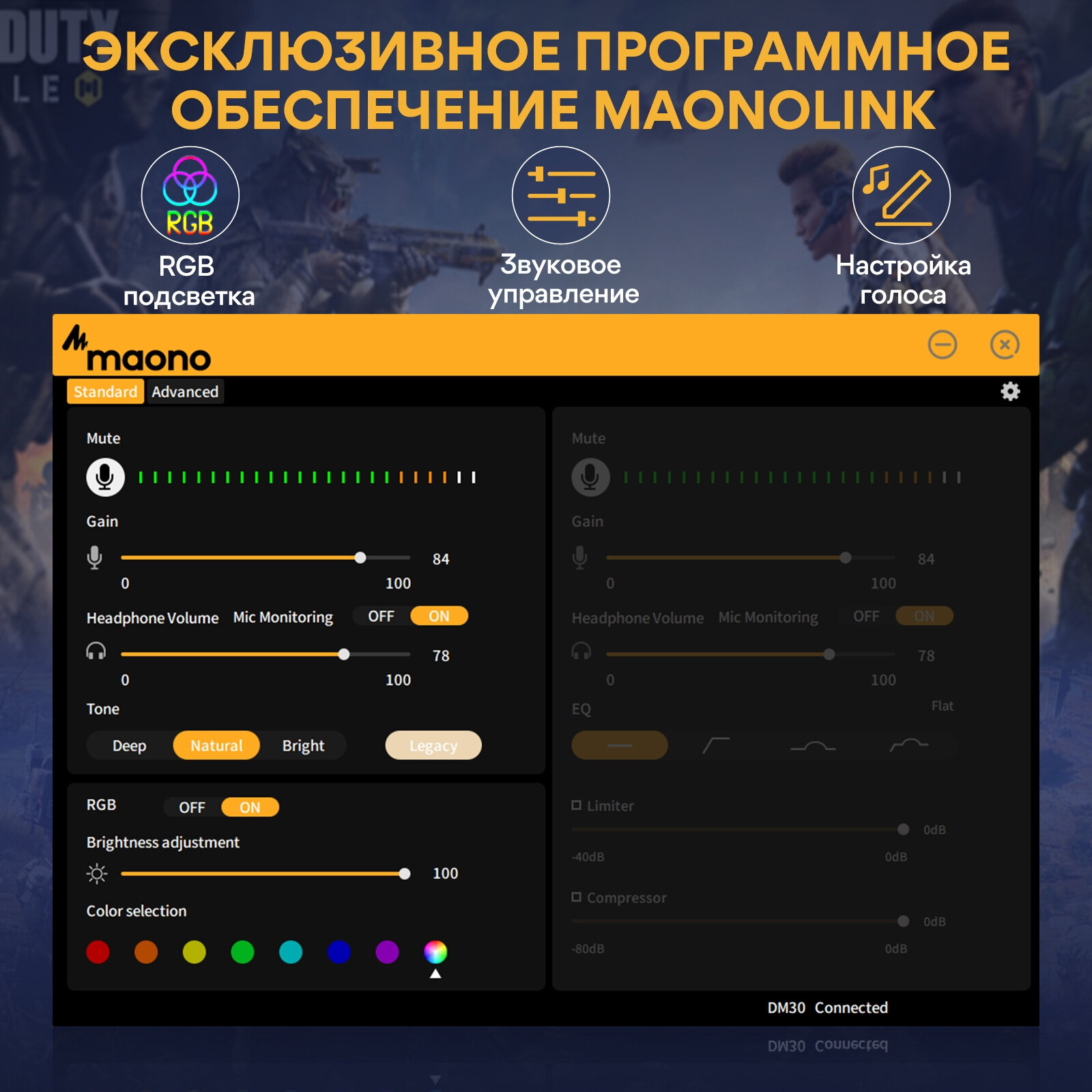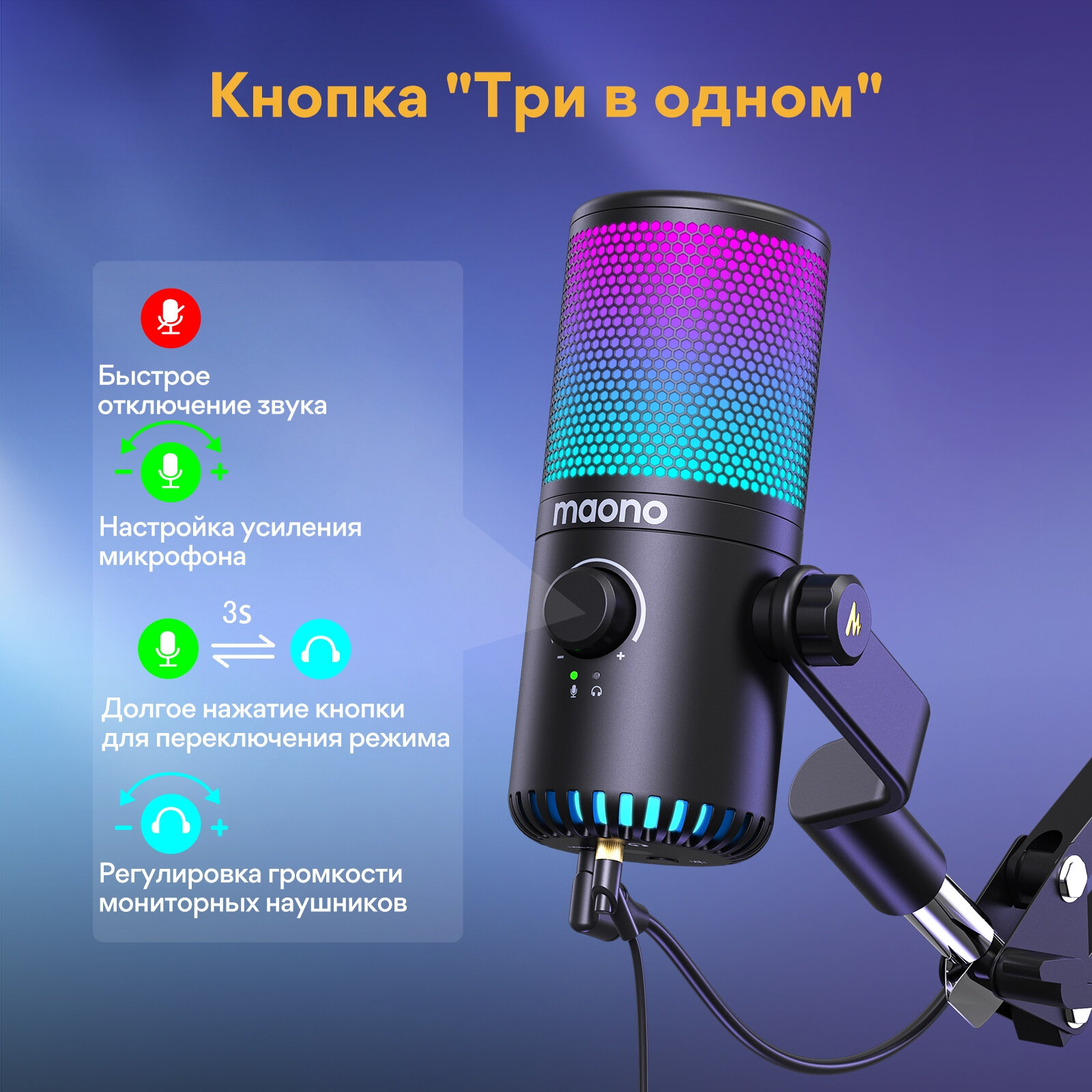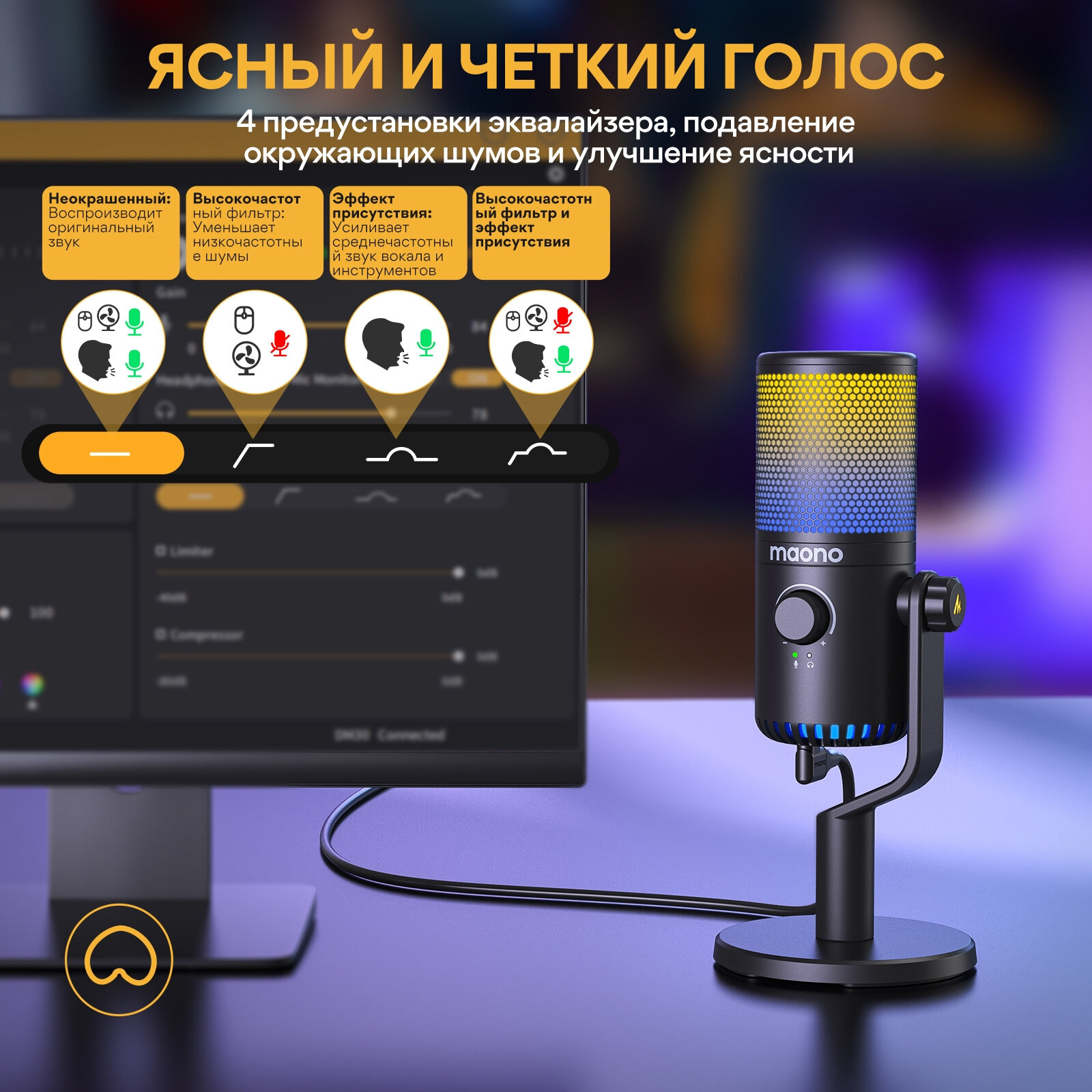 Maono DM30RGB конденсаторный USB микрофон, цвет черный интересное: