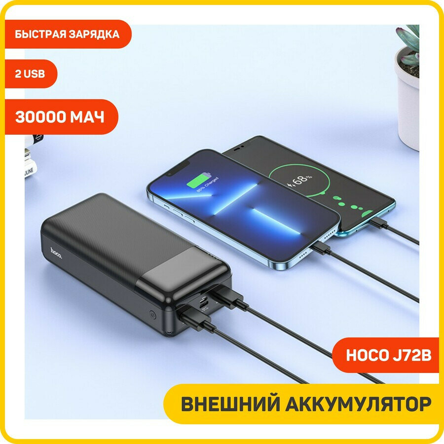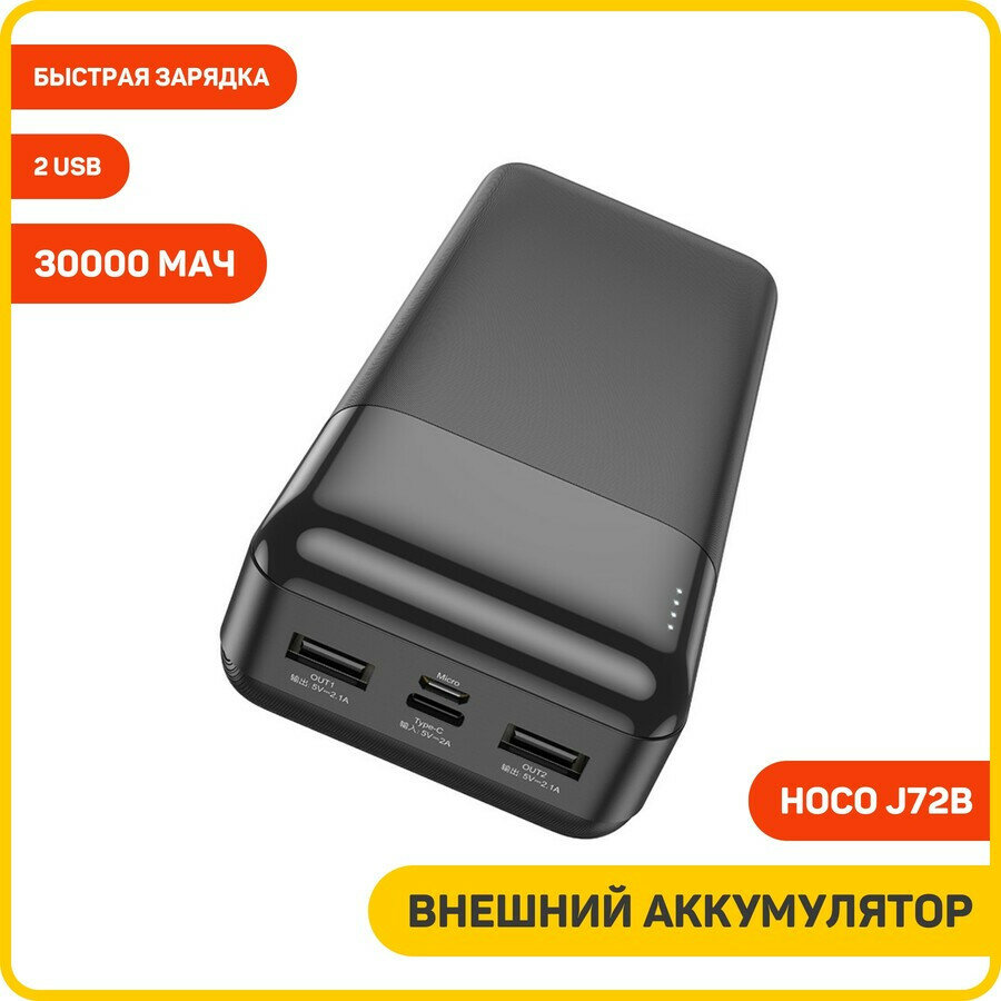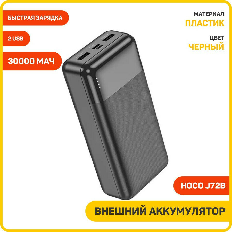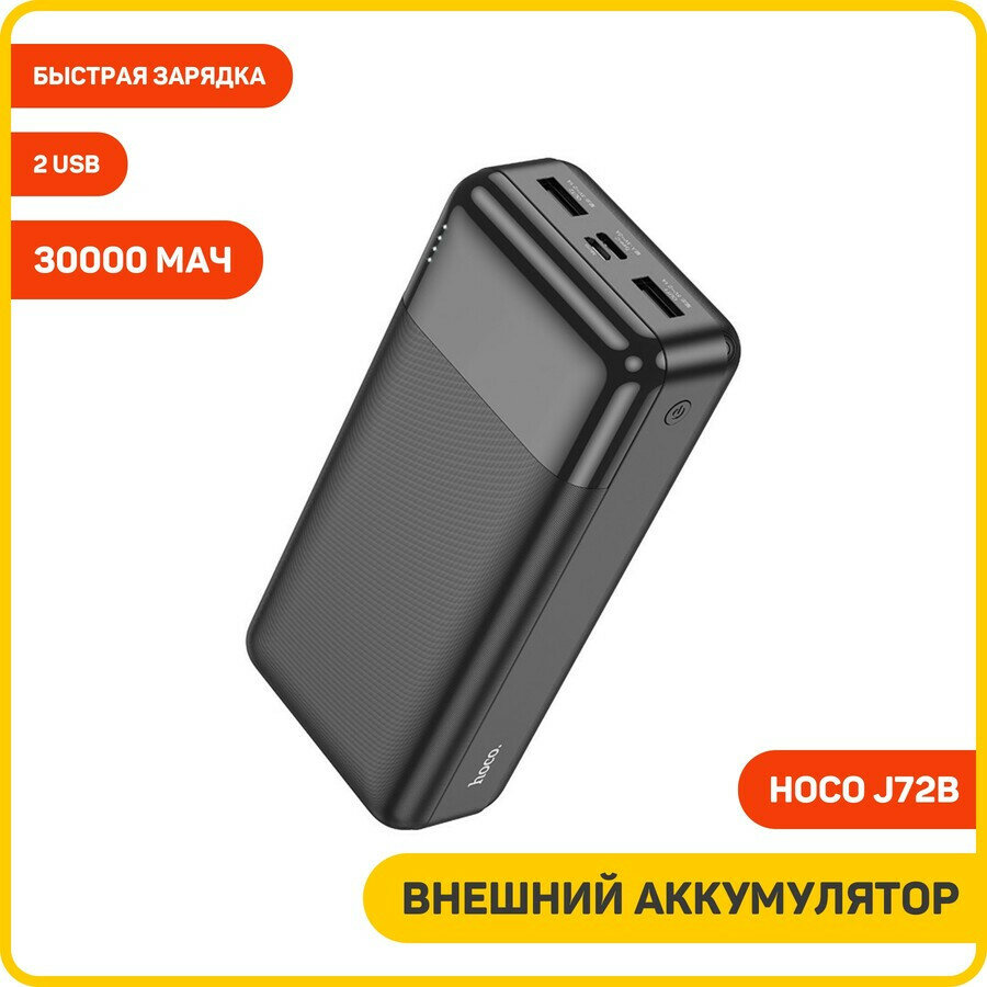Универсальный Доп. Аккумулятор 30000mAh, J72B, HOCO, выход: 2 USB (5V/2.1A), черный