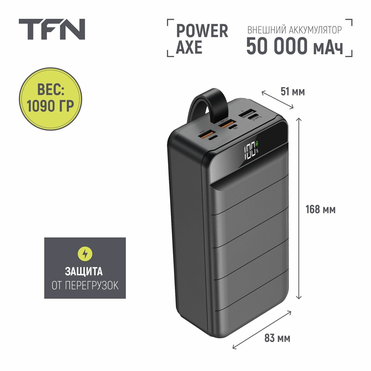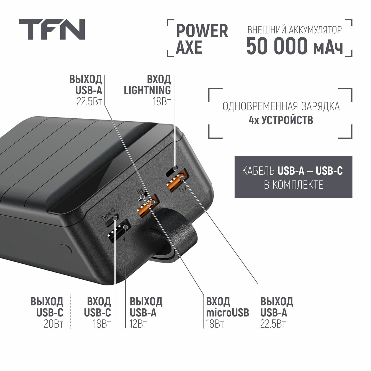 Внешний аккумулятор TFN PowerAxe 50 000 mAh Black (TFN-PB-309-BK) интересное: