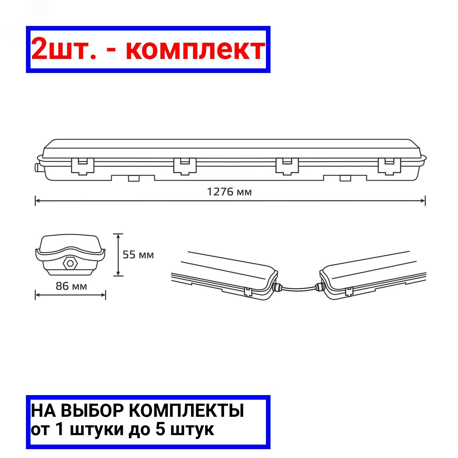 Светильник Lite G13 IP65 1276х86х55мм ДСП линейный для LED ламп 2х1200мм GAUSS 909437212