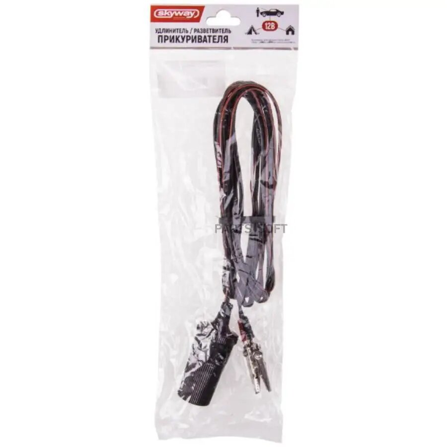 SKYWAY S00702001 Удлинитель прикуривателя 12/24 В 60-70 Вт черный 5 А с крокодилами 3 м Skyway