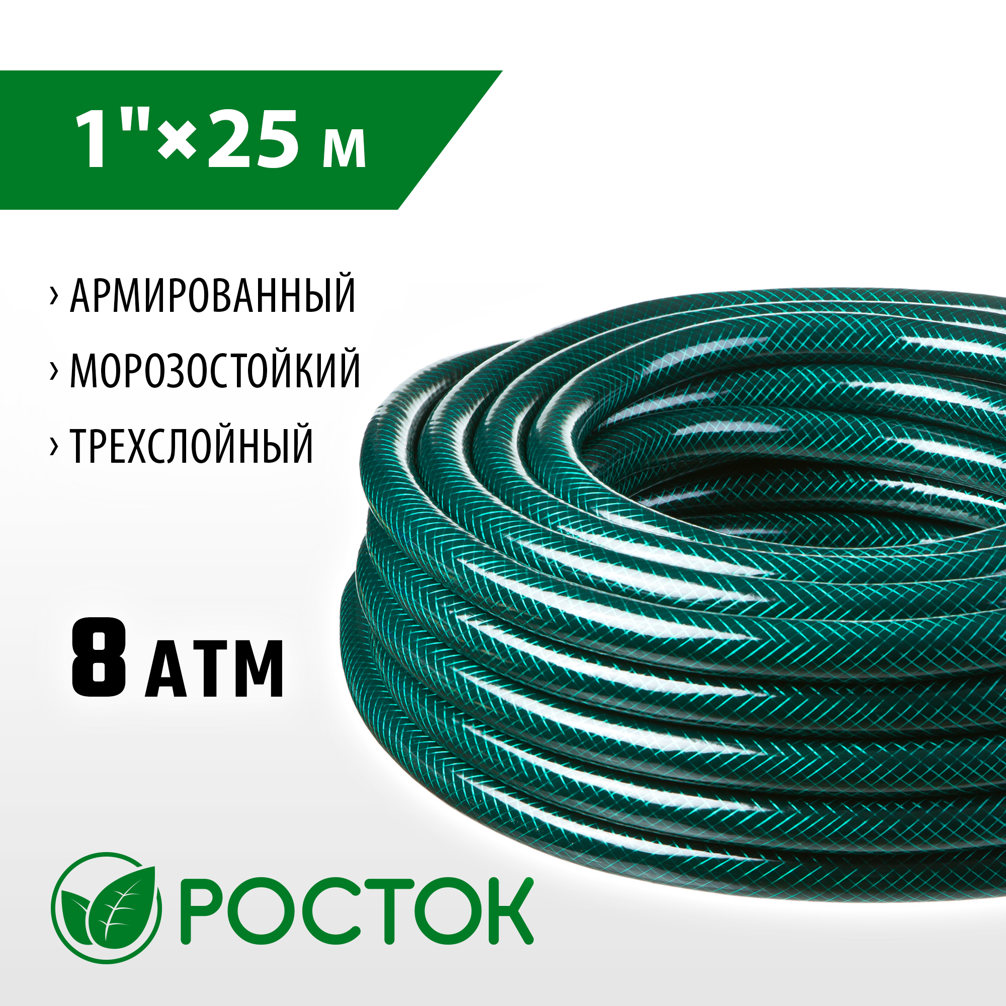 Росток 1″, 25 м, 8 атм, трёхслойный, армированный, поливочный шланг (40308-1-25)
