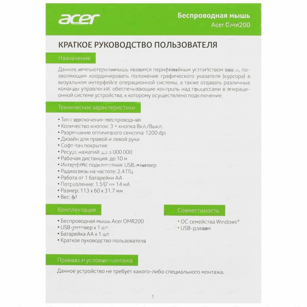 Мышь беспроводная Acer OMR200 [ZL.MCEEE.01Z] синий интересное: