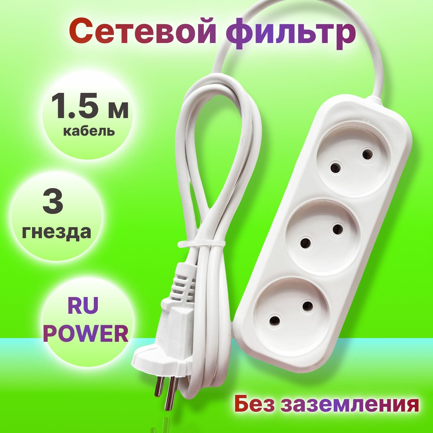 Купить Perfeo сетевой удлинитель без заземления "RU POWER", 1,5м, 3 розетки, белый (Р16-012)
