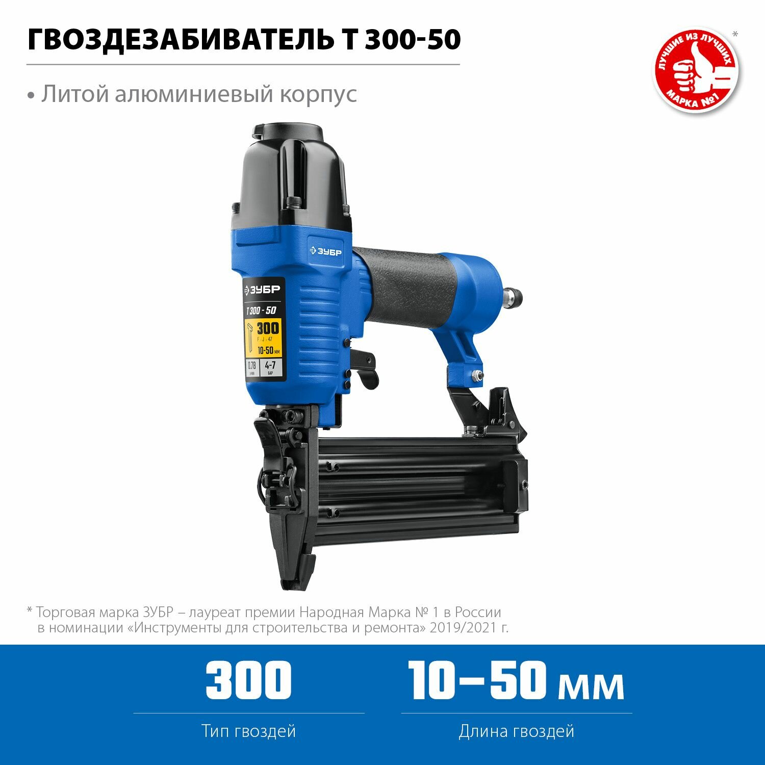Пневматический нейлер (гвоздезабиватель) ЗУБР Т300-50, гвозди тип 300 (10-50 мм), Профессионал