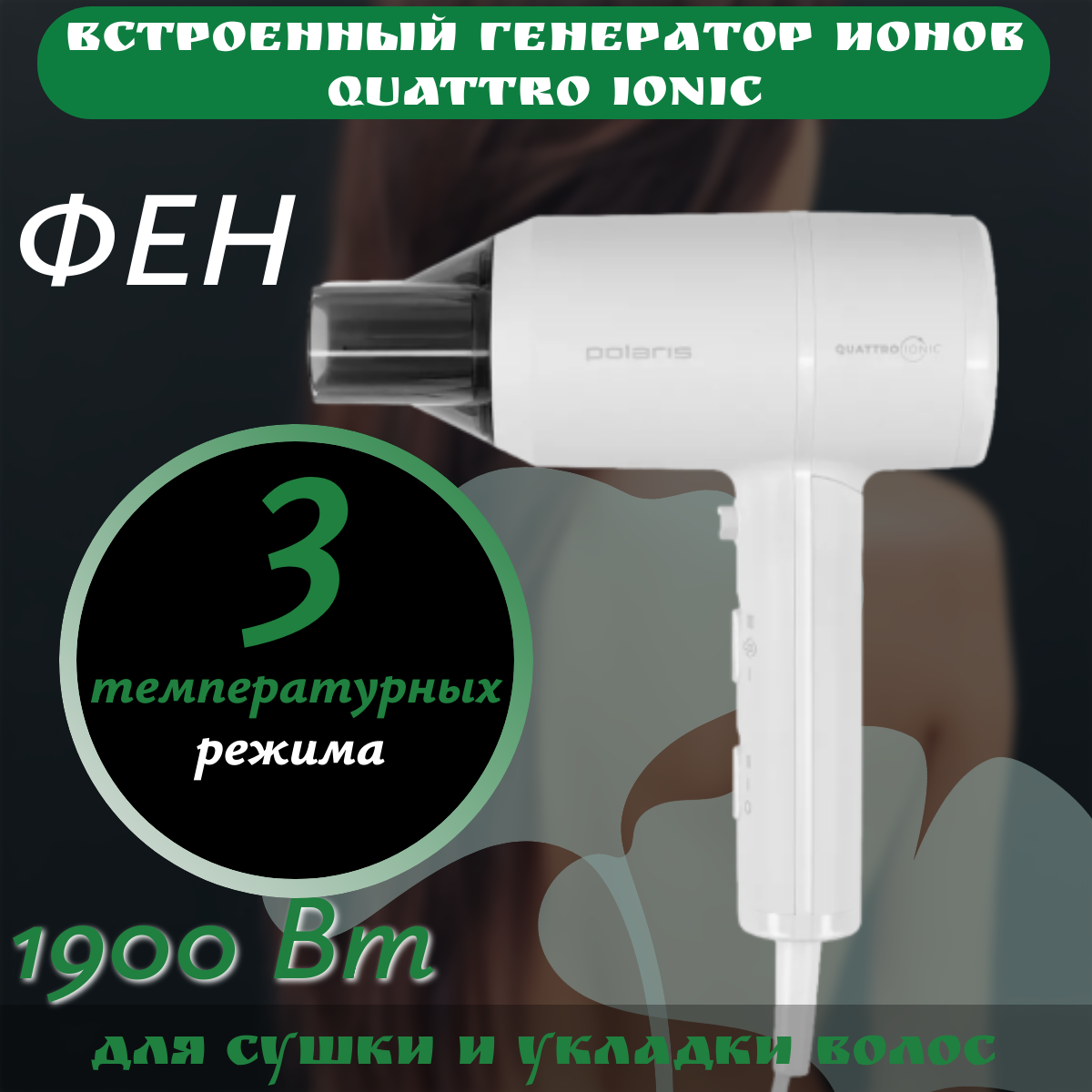 Фен Polaris PHD 2044Ti Quattro Ionic, белый . интересное:
