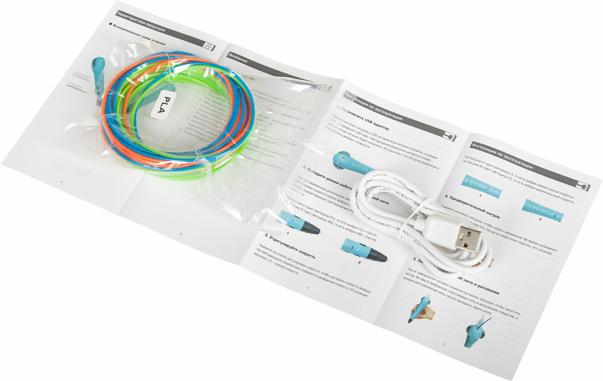 | Комплектация | руководство пользователя, 3D ручка, цветной пластик, провод микро-USB |