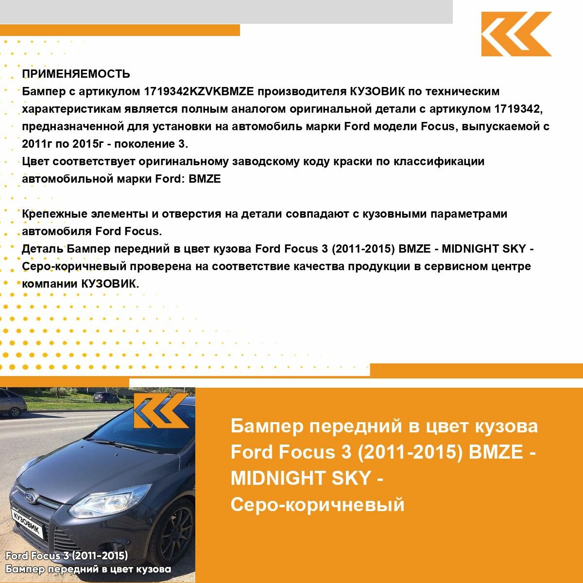 СохранитьБампер передний в цвет кузова для Форд Фокус 3 Ford Focus 3 (2011-2015) BMZE - MIDNIGHT SKY - Серо-коричневый интересное: