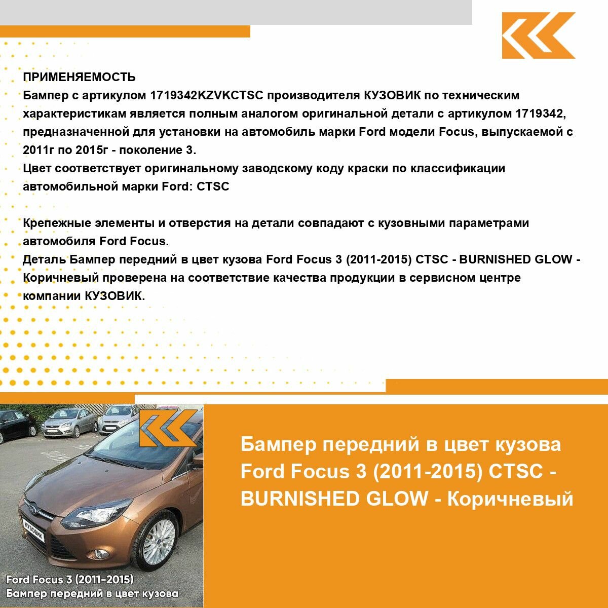 СохранитьБампер передний в цвет кузова для Форд Фокус 3 Ford Focus 3 (2011-2015) CTSC - BURNISHED GLOW - Коричневый интересное: