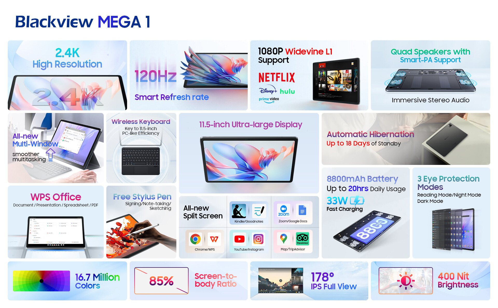 Купить Планшет Blackview MEGA 1 11.5" 1200x2000, MT8781, 8-ядерный, 8GB, 256GB, WI-FI, LTE, Android 13, серый