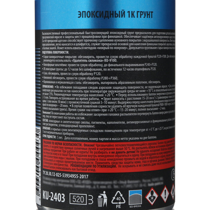 Грунтовка 520 мл Серая 1K эпоксидный KUDO KU-2403 интересное: