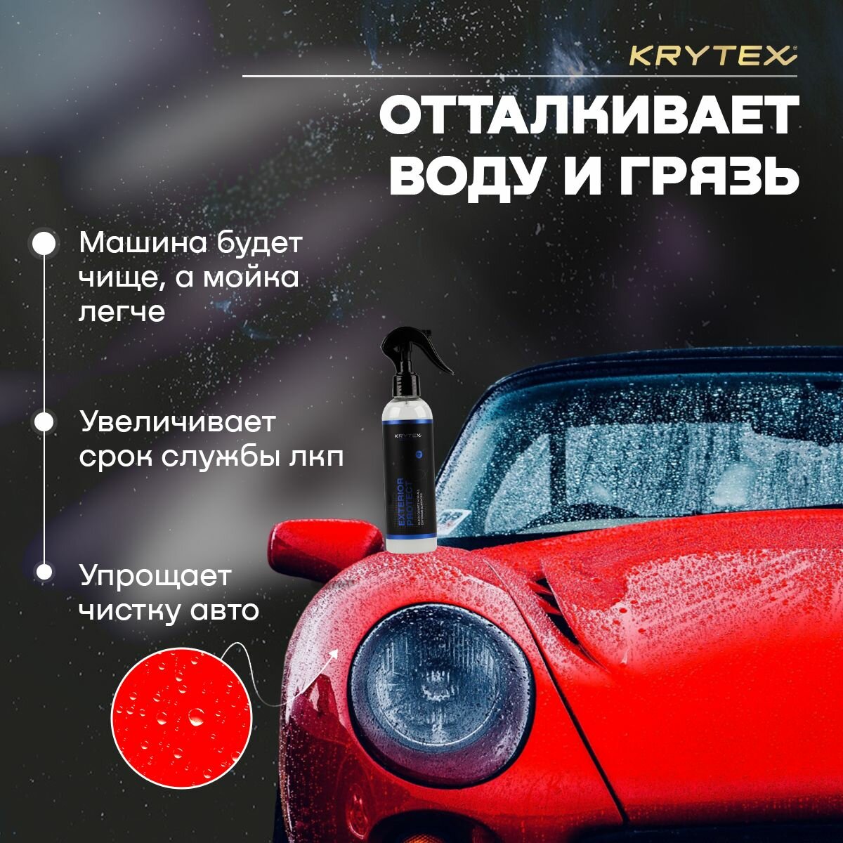 Быстрая Керамическая защита покрытие KRYTEX EXTERIOR PROTECT для кузова автомобиля (ЛКП) Гидрофобизатор на водной основе интересное: