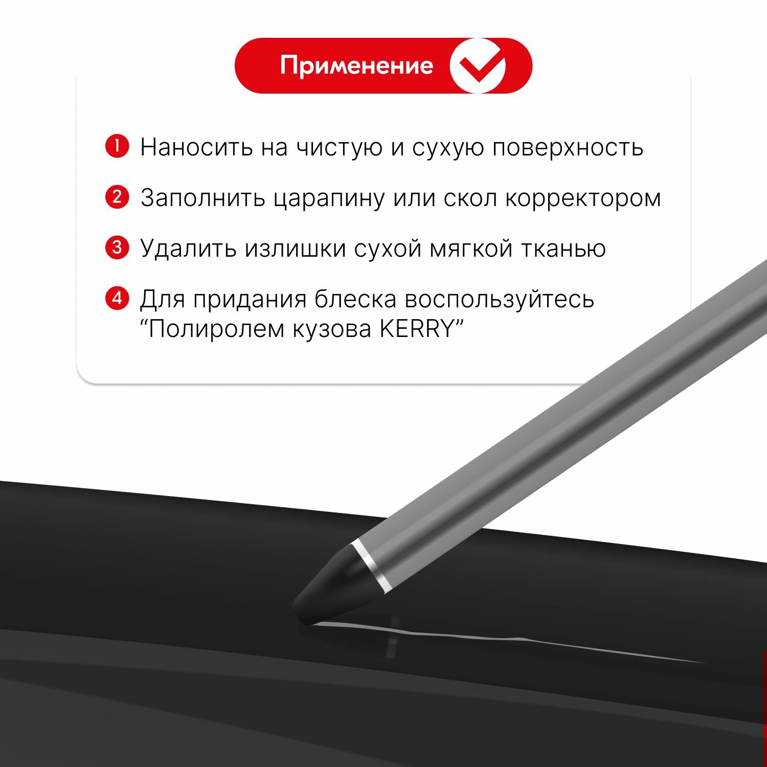Восковой корректор KERRY, карандаш от царапин и сколов на авто, чёрный интересное: