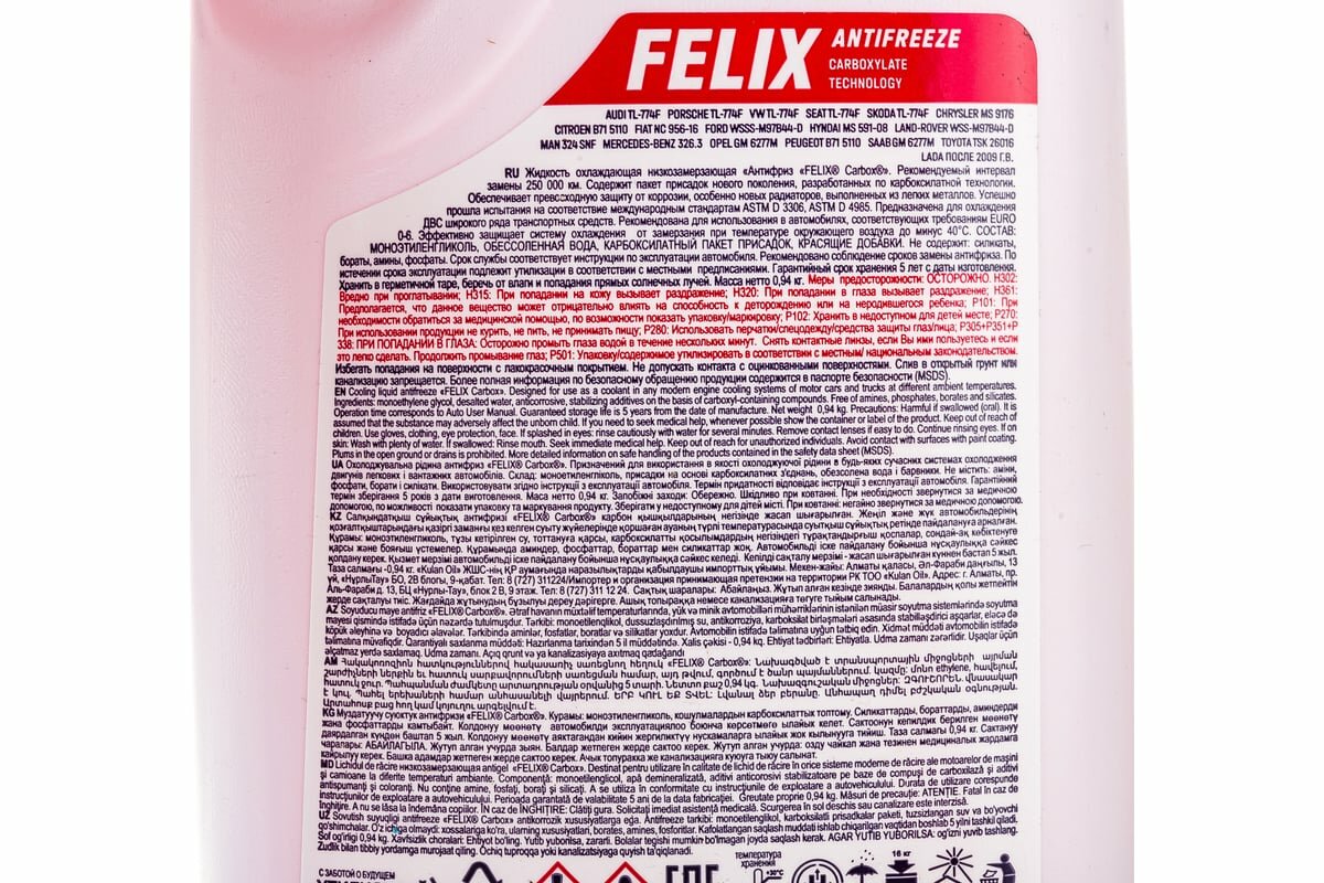 Антифриз Felix CARBOX готовый 40C красный 1 кг 430206032 интересное: