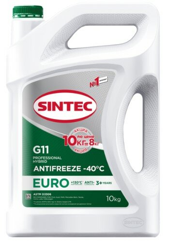 Антифриз Sintec Euro зеленый G11 (-40) 10 кг Акция 10 кг по цене 8 кг SINTEC 990582 | цена за 1 шт