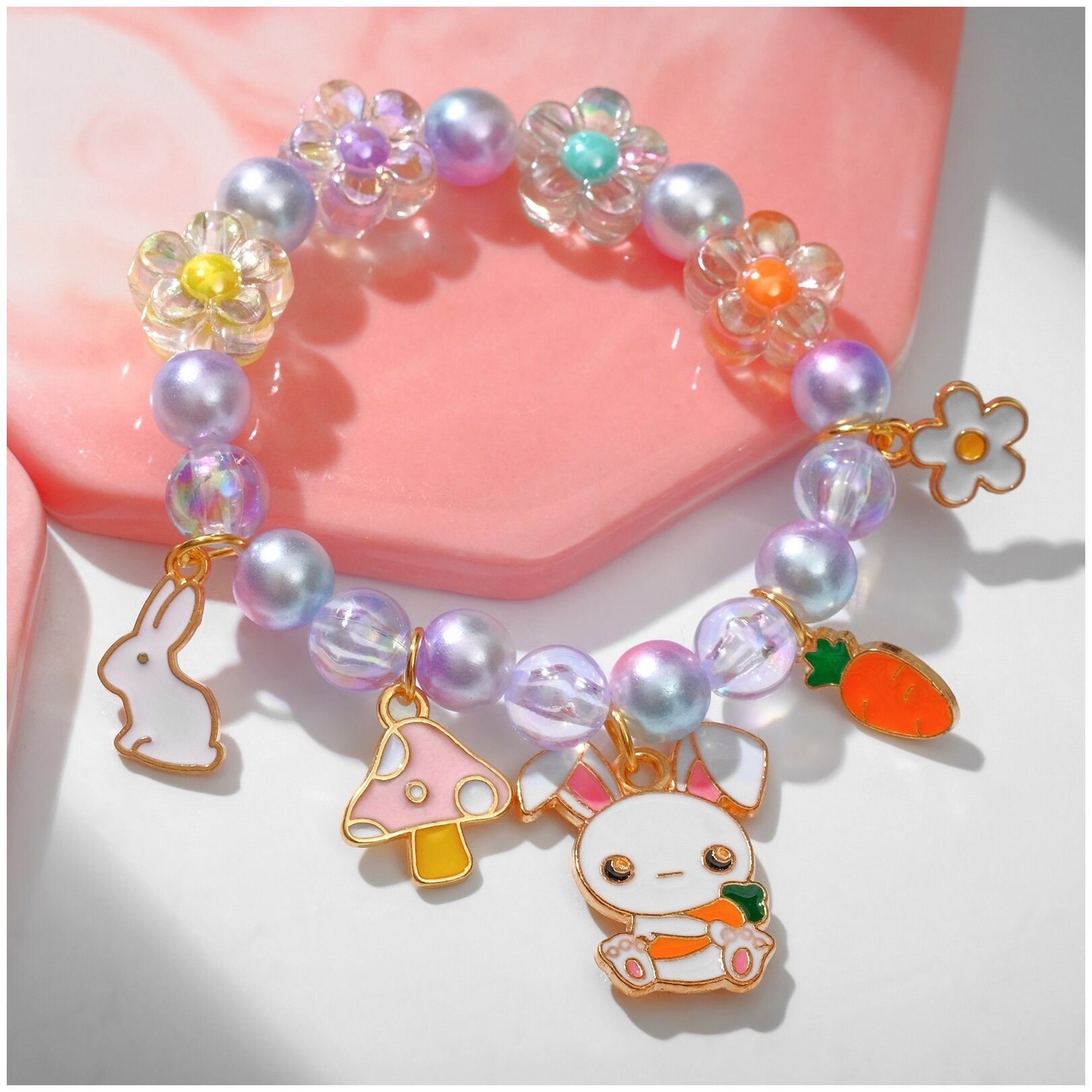 Браслет детский «Выбражулька» зайчик с морковкой, цветной в золоте