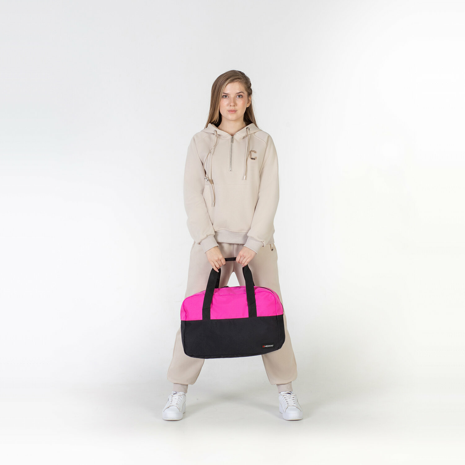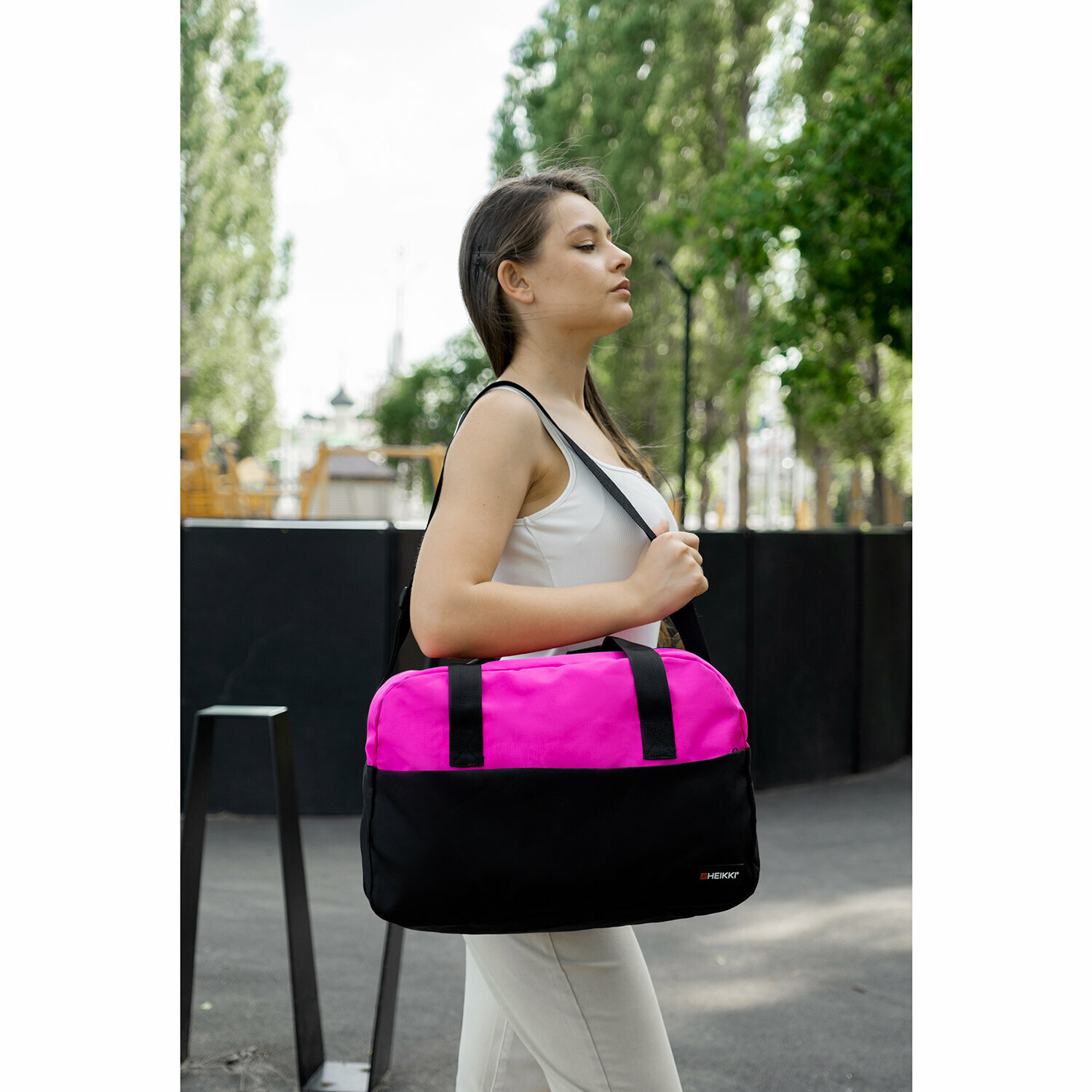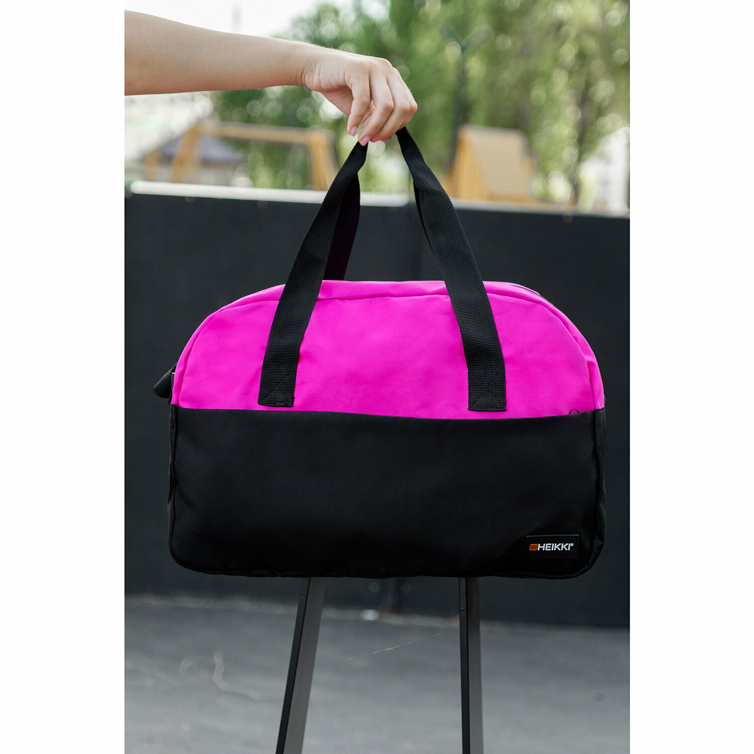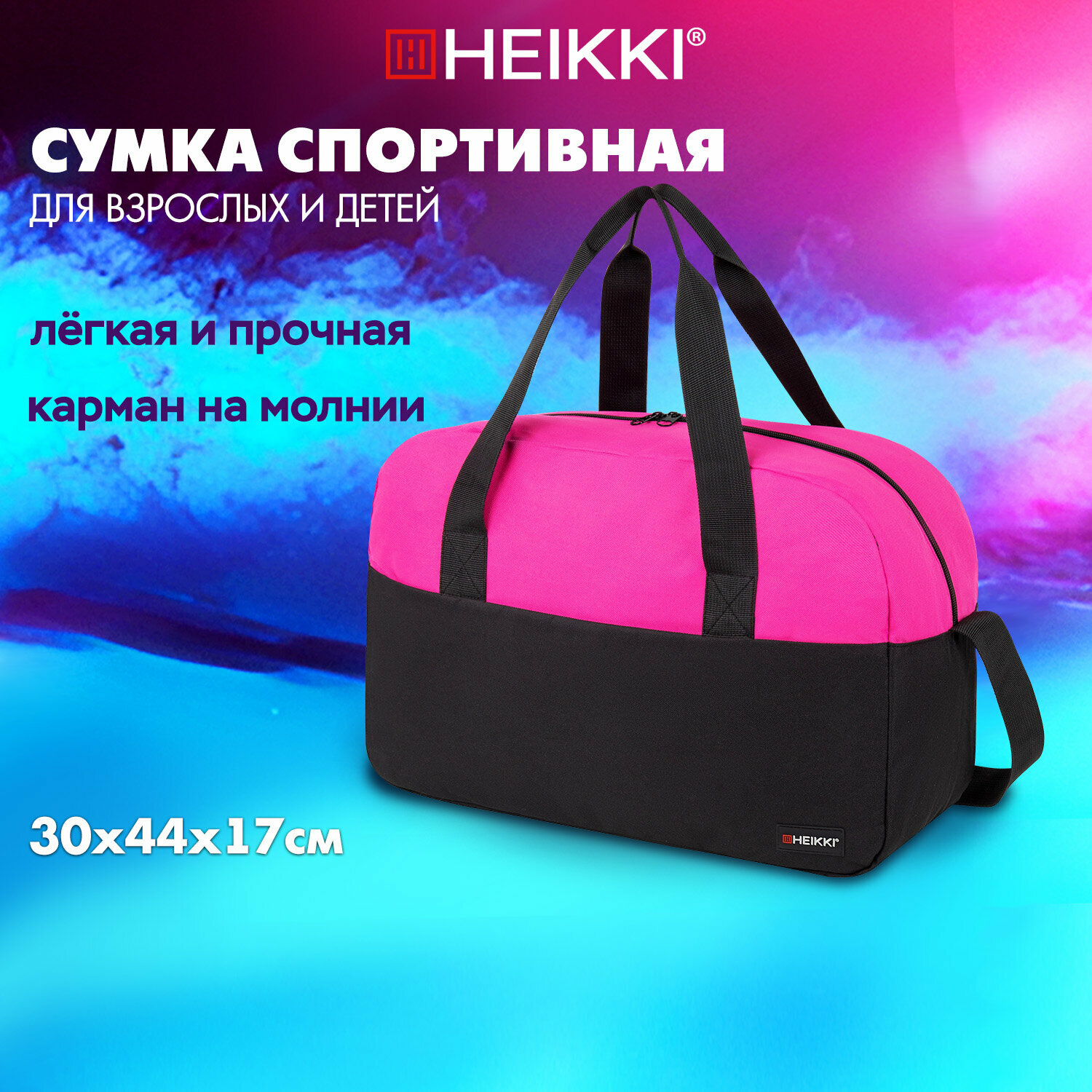 Купить Сумка спортивная HEIKKI BASE (хейки), карман на молнии, черная/фуксия, 30x44x17 см, 272621