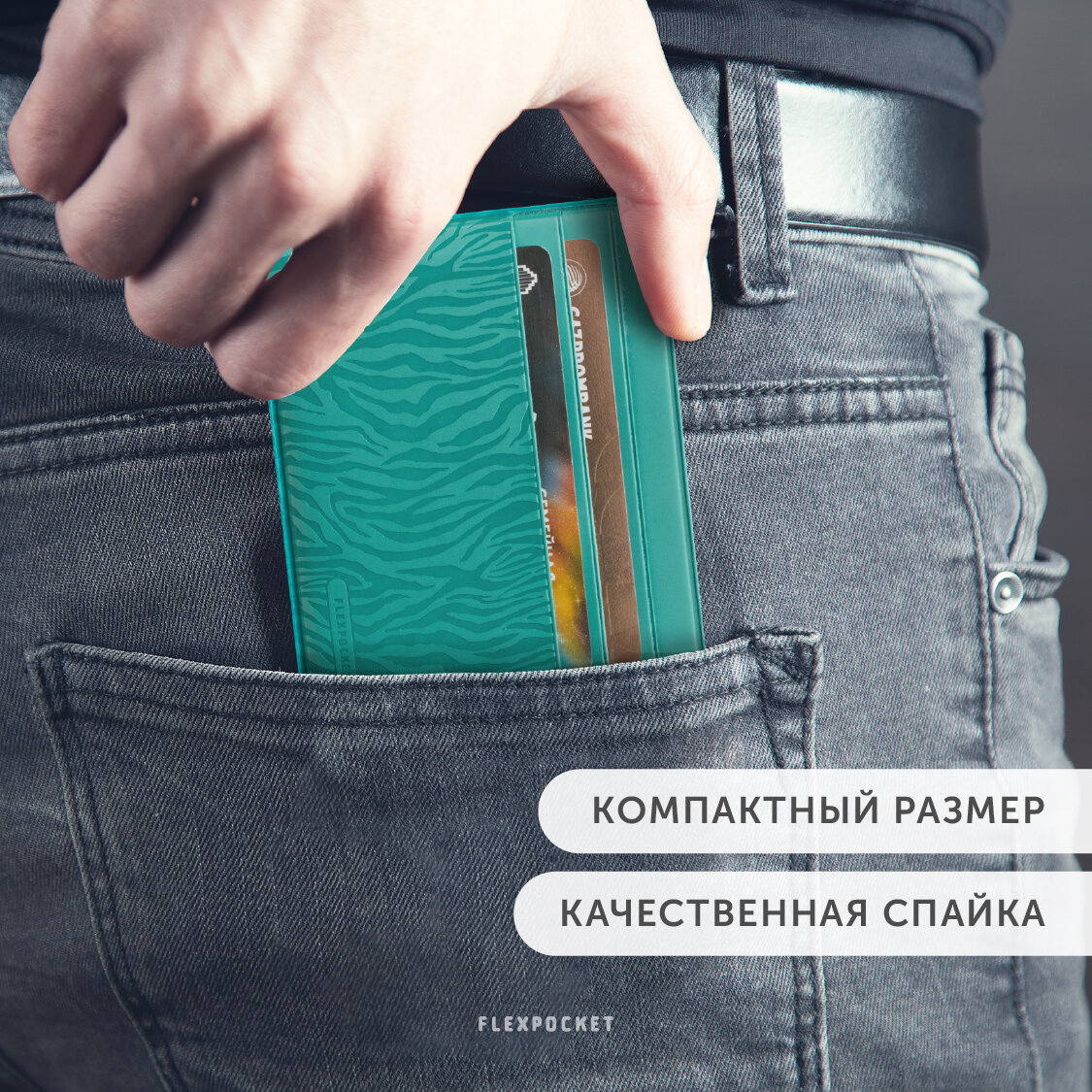 Купить Картхолдер Flexpocket, защитный футляр на 6 карт, цвет бирюзовый