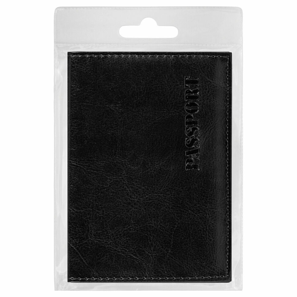 Обложка для паспорта экокожа, мягкая вставка изолон, "PASSPORT", черная, STAFF Profit, 237183