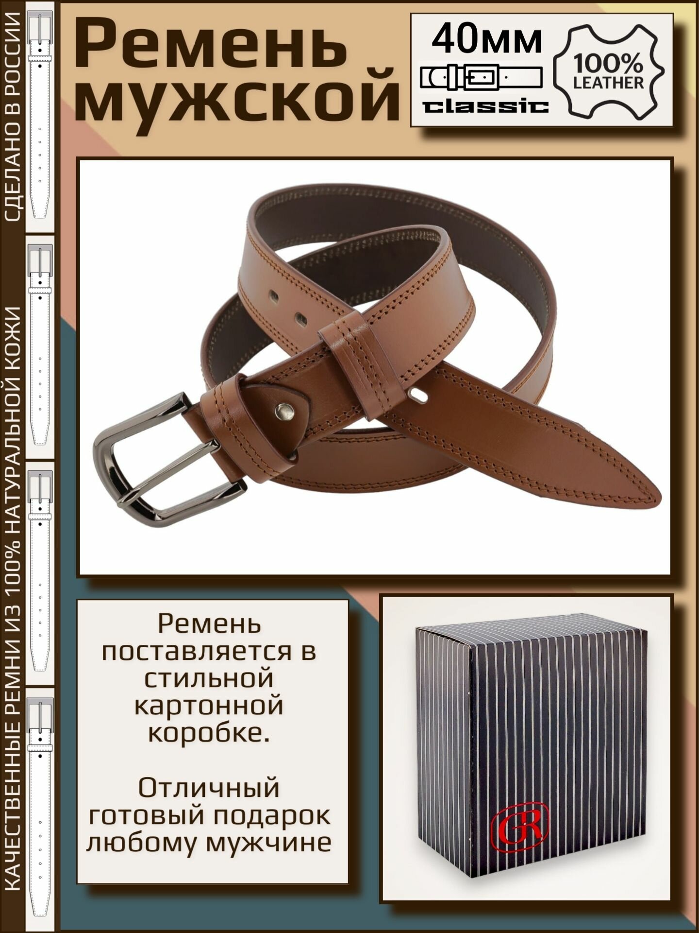 Ремень мужской кожаный AKSY BELT, коричневый, 40мм, прошитый, Италия, 125 см