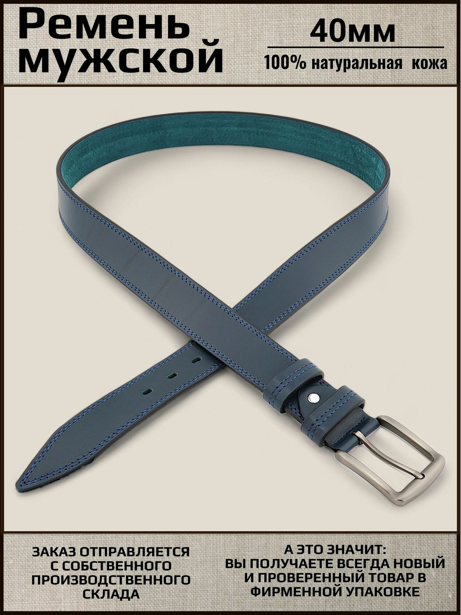 Ремень мужской кожаный AKSY BELT синий, 40мм, 2 строчка, Италия, 125 см
