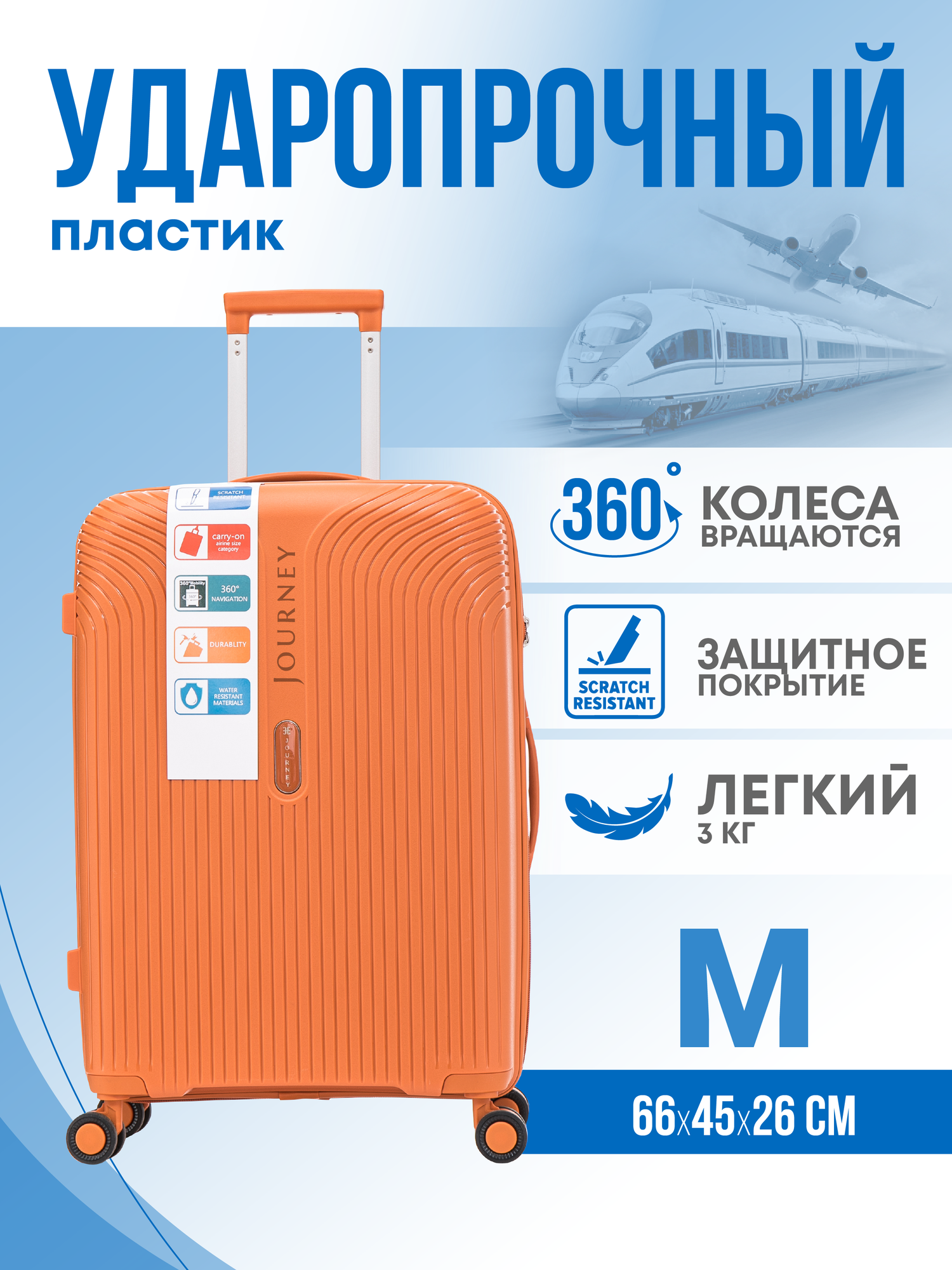 Купить Чемодан JOURNEY, полипропилен, прочный, износостойкий, водонепроницаемый, 68 л, размер M, Оранжевый