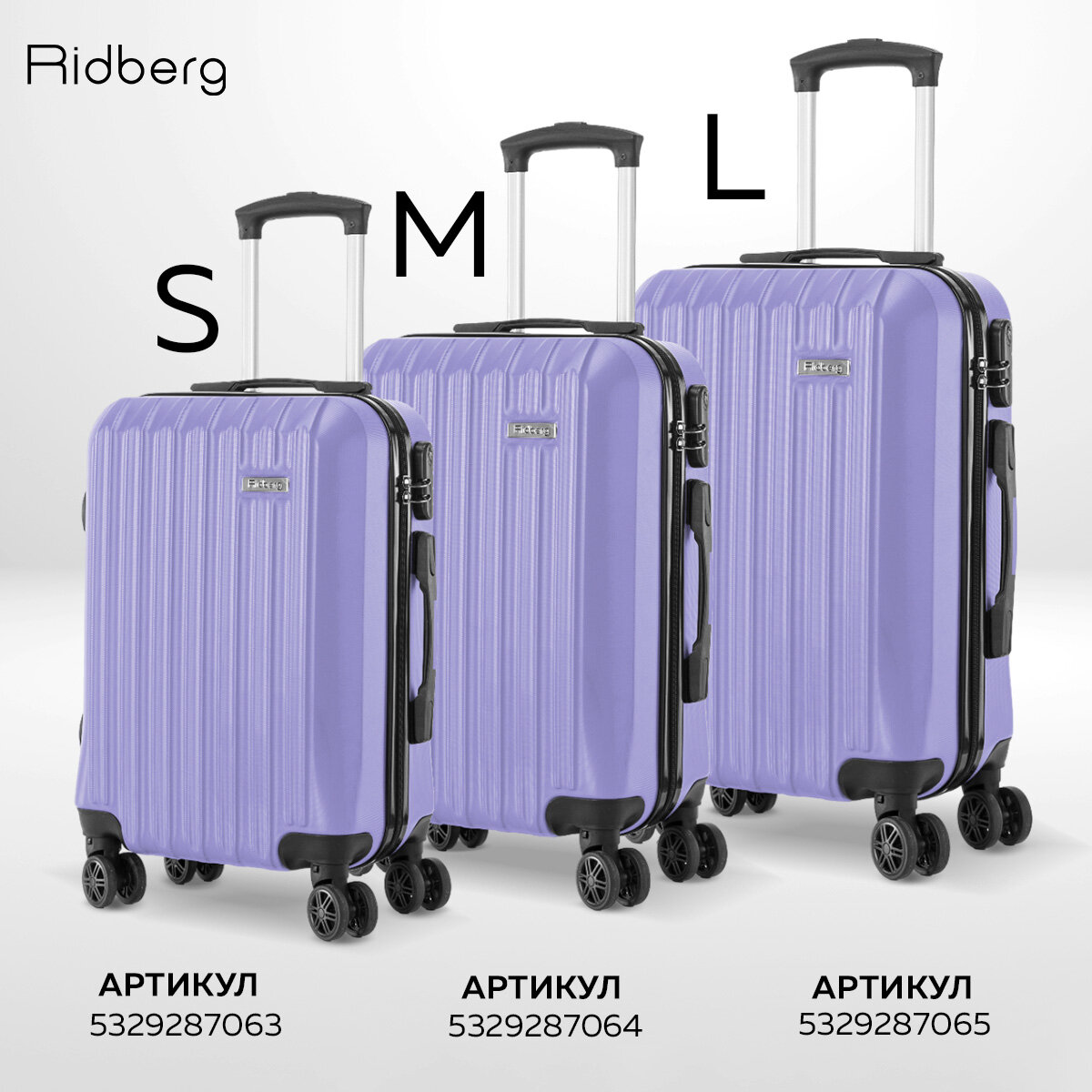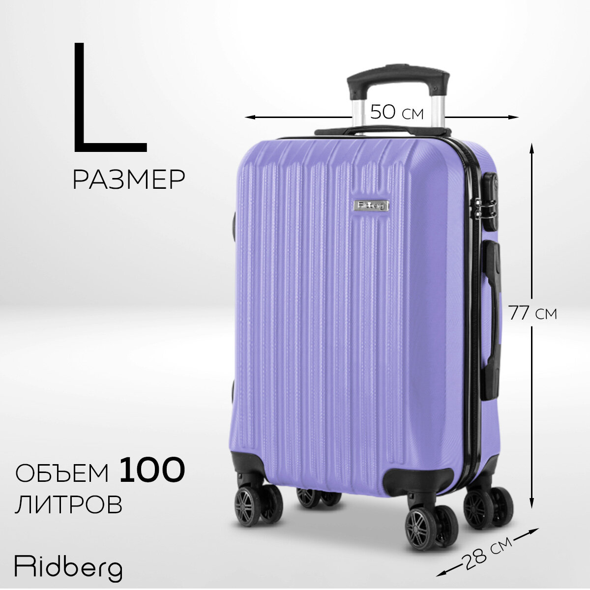 Купить Чемодан Ridberg Discover размер L.(материал: ABS-пластик, кодовый замок, съемные колесики, лиловый)