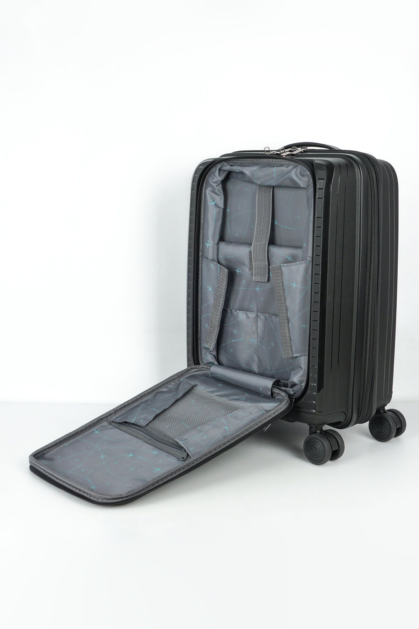 Купить Чемодан Sweetbags маленький (ручная кладь) из полипропилена с расширением на 4-х колесах с TSA замком (Панцирь) черный S