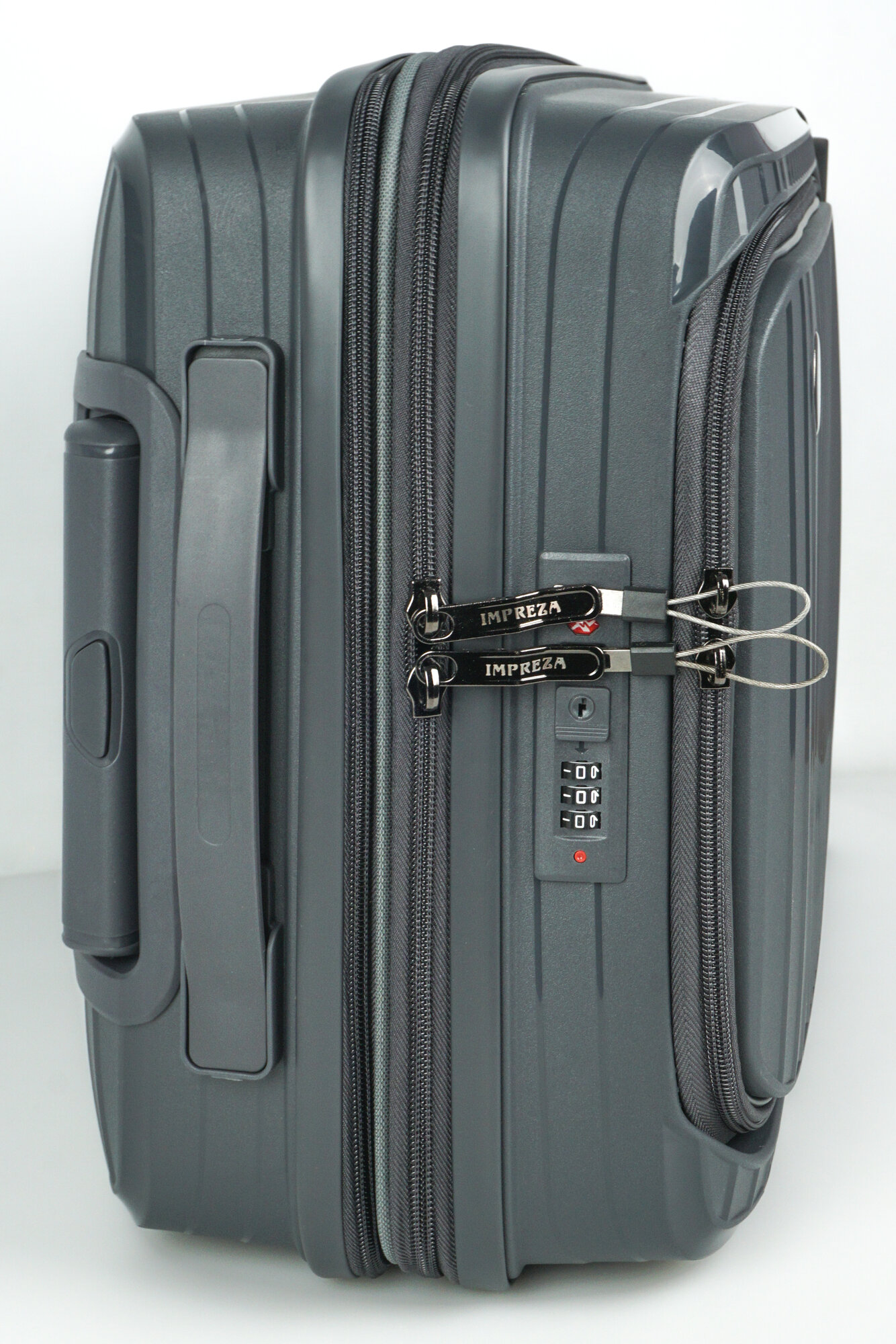 СохранитьЧемодан Sweetbags маленький (ручная кладь) из полипропилена с расширением на 4-х колесах с TSA замком (Панцирь) темно-серый S интересное: