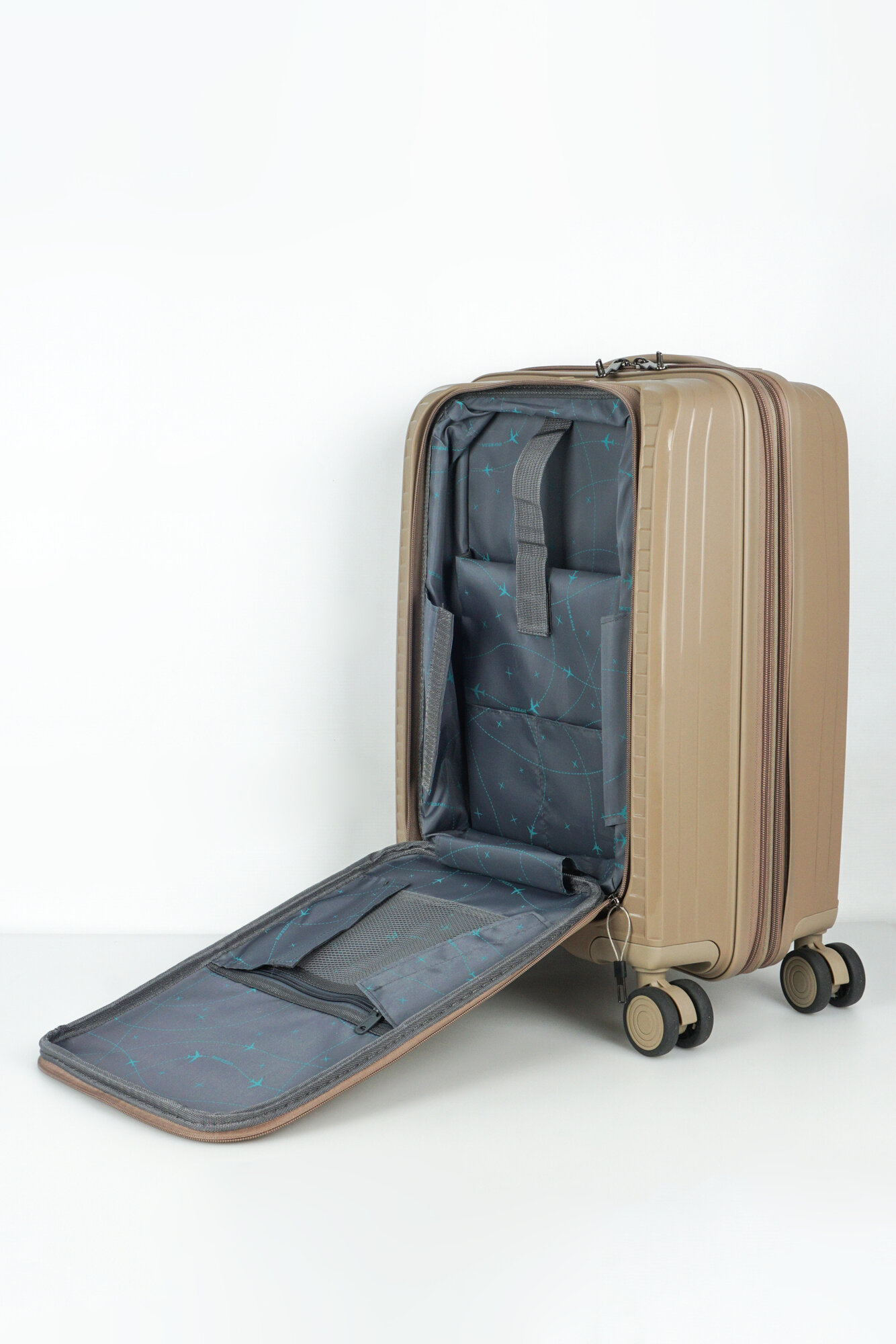 СохранитьЧемодан Sweetbags маленький (ручная кладь) из полипропилена с расширением на 4-х колесах с TSA замком (Панцирь) песочный S интересное: